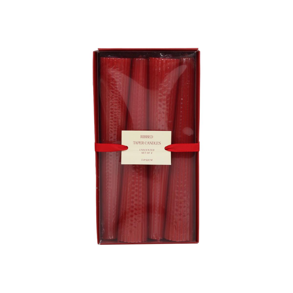 This Pack of 4 Nordic Ribbed Taper Candles have a beautifully unique style and shape to bring interest to your room. They will be an eye-catching addition to your home while fitting in many home decor styles. They're available in red or green for a festive feel and will look wonderful sitting on your accent or dining tables, making your home feel inviting and stylish.