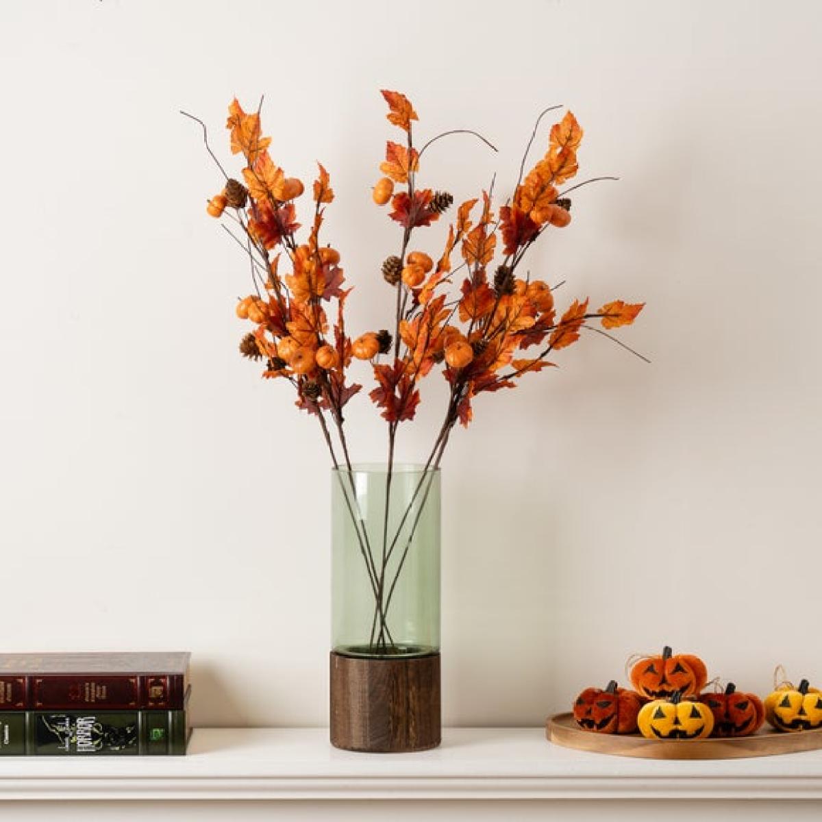 I love this bunch of artificial autumn stems for adding seasonal warmth and colour to any interior. They work especially well in neutral or minimalist spaces where a pop of autumnal tones can create a cosy, inviting atmosphere. You can style them in a simple vase on a coffee table, sideboard, or mantel for an effortless seasonal touch. They’re also perfect for dressing up tablescapes, mantels, or shelving without the fuss of fresh flowers that need regular replacement. For extra impact, try grouping them with other natural textures like candles or wooden accessories. Their long-lasting nature makes them a practical choice for year-round display, ensuring your seasonal decor stays fresh and vibrant without any maintenance.