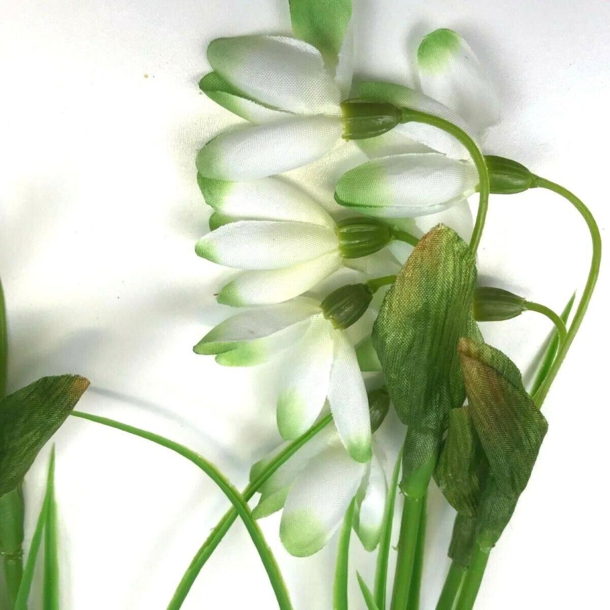 These lovely Artificial Snowdrop plants measure 30cm with stems and have white flowers. The leaves are textured giving a real touch-type feel and the flowers are soft to the touch. Perfect for faux flower craft projects, wedding decorations, gifts and flower displays in lobby areas, hallways, living rooms and entertaining areas.