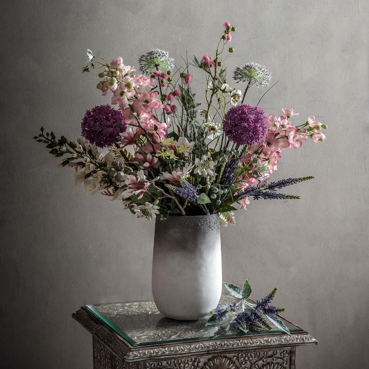 I really like these faux Astrantia sprays for adding a touch of delicate greenery and subtle colour without the upkeep of fresh flowers. They work particularly well in minimalist and modern interiors, where their understated elegance can brighten up side tables, shelves, or even bathroom counters. For a more natural look, try grouping a few together in a clear vase or arranging them in mixed bouquets with other faux botanicals. Practical styling tips include trimming the stems to suit your container height and placing them in open spaces to mimic real blooms, which enhances their authenticity. These are great for adding seasonal interest or simply maintaining a fresh look year-round without any fuss.