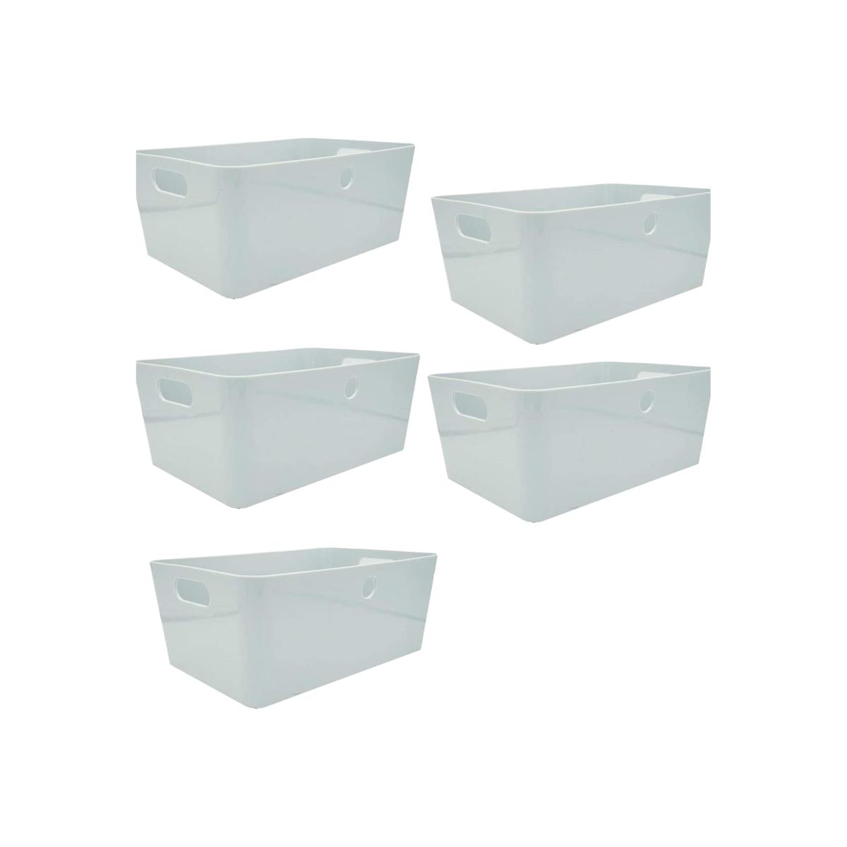 Made in the UK, here we have a pack of 5 Ralphs medium storage boxes in dove grey. Each basket features a practical handle on either side for ease of handling as well as one on the front to aid accessibility when the basket is in a cupboard or on a shelf etc.