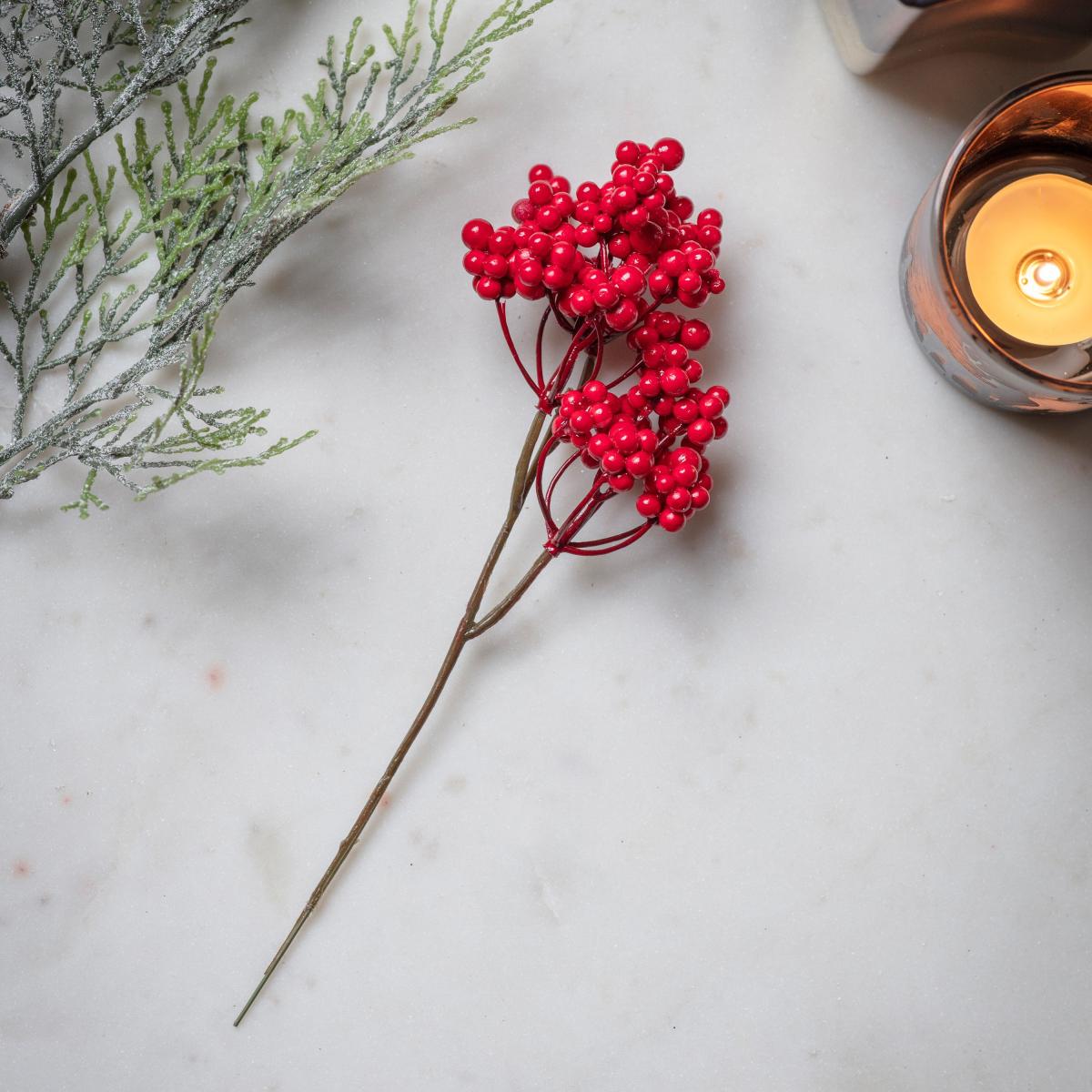 Set up your space for the festive season with this set of classic red winter berries. Great for adding a vibrant touch to your dining table decorations or floral display, these plump berry clusters require no maintenance so will stay fresh throughout the entire season.