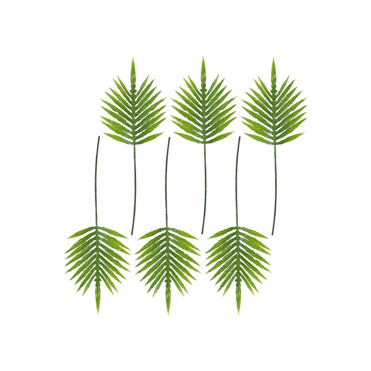 Pack of 6 x Green Artificial Palm plant leaves. Can be used to make arrangements with our other artificial flowers or as decorations on their own. The stems are wired so these can be shaped and bent to arrange. These are easy to cut down shorter using a pair of wire cutters if required. Some of our photos show vases to give an idea of size and possibilities for arrangement but no vases or planters are included with these leaves.