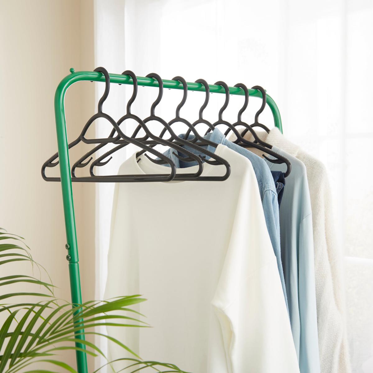 I really like these black plastic hangers because they offer a sleek and uniform look that works well in both contemporary and minimalist interiors. Their neutral colour can help keep wardrobes and clothes rails looking tidy and streamlined, especially when combined with other monochrome or colour-coordinated storage solutions. Practical tips include using them for lightweight garments like t-shirts, blouses, or especially in laundry rooms - they’re budget-friendly and easy to replace, making them ideal for casual use. To keep everything looking neat, try organising clothes by type or colour on the hangers, and the black finish will hide minor marks or wear over time, keeping your wardrobe looking smart without effort.