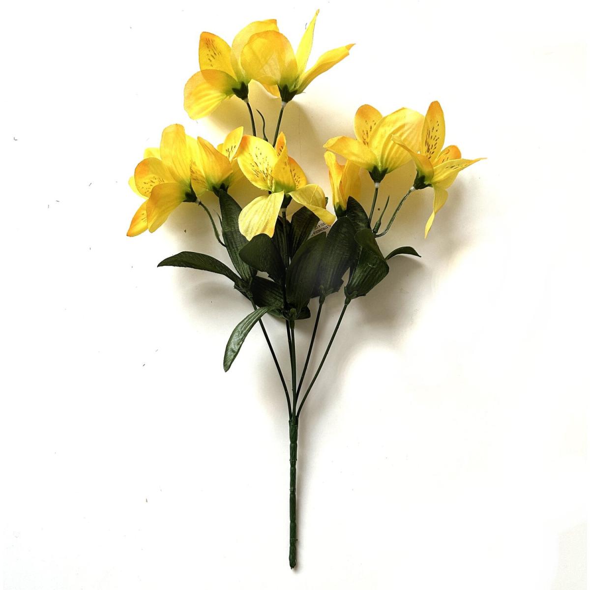 I love this bunch of artificial Alstroemeria because of its vibrant yellow tone, which adds a cheerful touch to any space. It’s perfect for bringing colour into rooms that might lack natural light or for those who want low-maintenance floral options. These faux plants work well in both modern and traditional interiors, especially when styled in clear glass vases or rustic jars for a more relaxed look. Practical tips include grouping several bunches together to create a fuller arrangement or mixing them with other faux or real flowers for added visual interest. They’re ideal for use in kitchens, dining tables, or even bathrooms where real flowers might struggle to thrive.