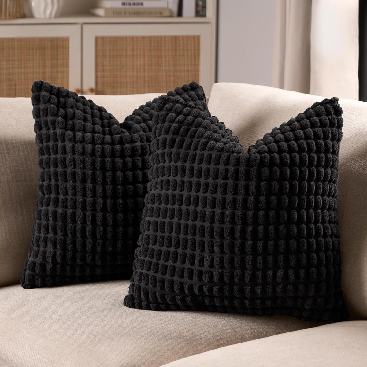 I love this set of black bobble tufted cushion covers for adding texture and depth to a variety of interiors. They work particularly well in modern or contemporary spaces thanks to their tactile, structured look, but they can also add an interesting contrast in more minimalist or monochrome schemes. Styling tips include pairing them with neutral-toned cushions or velvet throws to balance their chunky texture, or using them on a sofa or armchair to create a cosy, inviting feel. Their versatile colour makes them easy to incorporate into both casual and more refined schemes, lending a touch of tactile interest without overwhelming the space.
