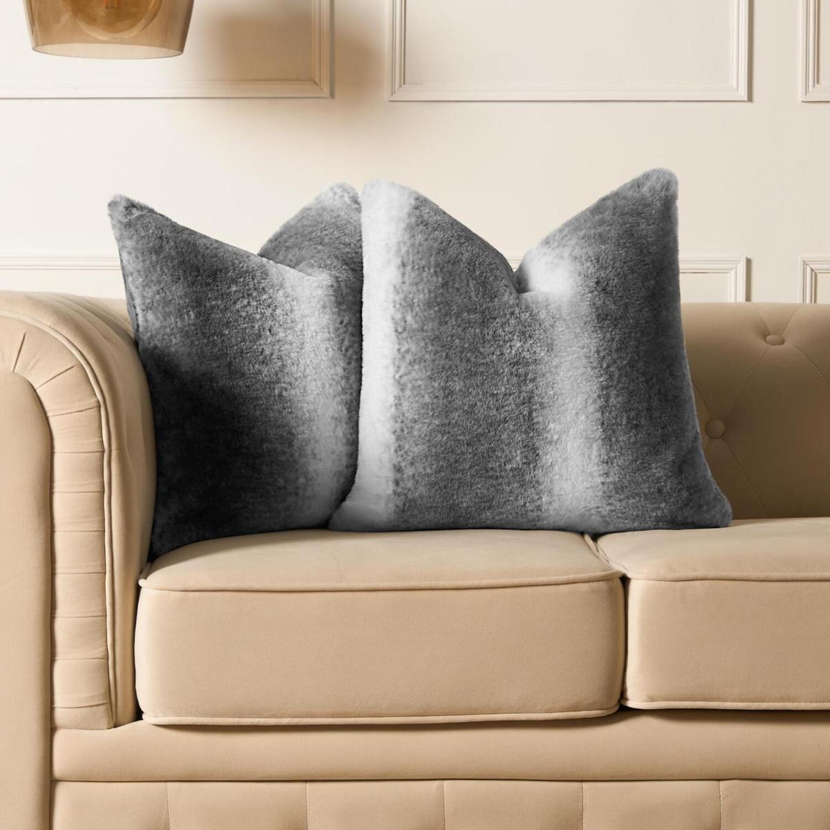Pack Of Faux Fur Stripe Pattern Cushion Covers - Charcoal / 2