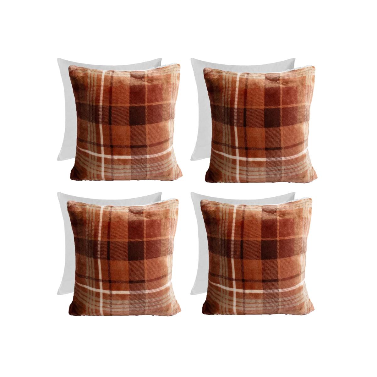 Pack Of Felix Flannel Check Filled Cushions - Rust / 4