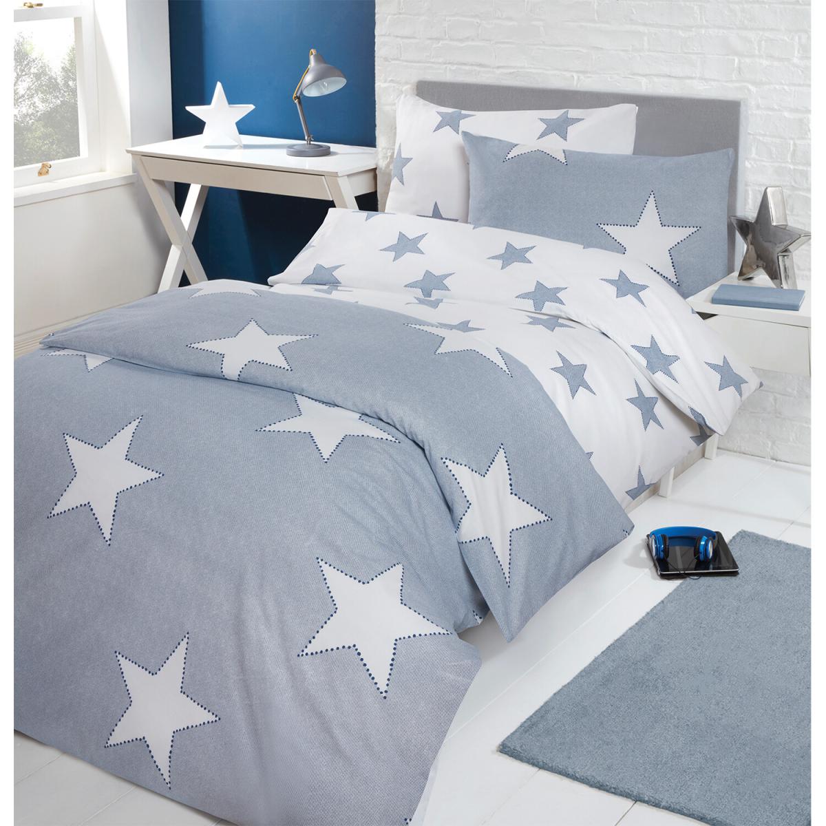 Pack of Two Star Print Duvet Cover and Pillowcase Sets - Blue / White