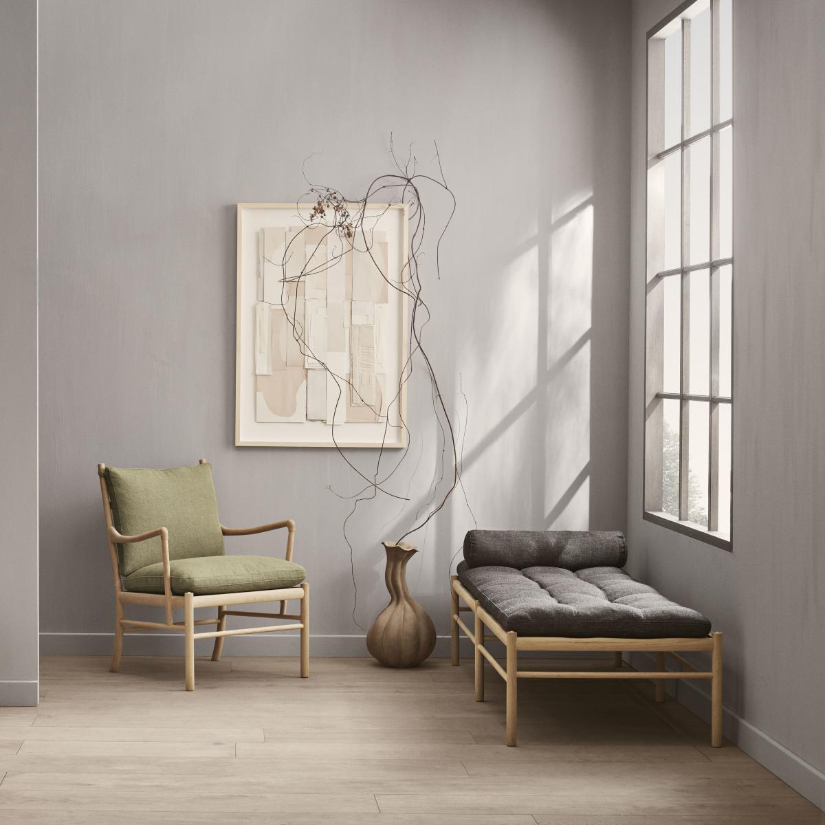 Since 1908, Carl Hansen & Søn has embodied the quintessence of Danish design by combining craftsmanship, quality and innovation. The brand brings together a collection of masterpieces of Scandinavian design: iconic items created by the greatest Danish designers. Handcrafted in Denmark, these pieces with their exceptional quality stand the test of time. With the strictest respect for the original models, Carl Hansen & Søn reissues the legends from the founders of Scandinavian design. Enter the design legend with this reissue of the OW149 armchair or ''Colonial Chair'', designed in 1959 by Ole Wanscher (1903-1985). This pioneer of Scandinavian design played a major role in the Danish design movement of the 20th century. His career has been marked by a relentless pursuit of timeless elegance and functionality in furniture, principles that continue to influence contemporary designers around the world. The Colonial Chair upholstered armchair is Wanscher's most famous work. It combines contrasting shapes and materials to create a luxurious ensemble. The refined aesthetic obtained by reinventing classic shapes helped redefine Scandinavian design of the time. Despite its slender lines, the Colonial Chair is very stable. Sophisticated, gently curved armrests rise to a point before turning downward – a characteristic of Wanscher. The front and rear legs are round, with the rear legs gently curving outwards for added stability and a more refined result. The Colonial Chair is much more than just a piece of furniture: it's a functional work of art that embodies the heritage of Danish design.