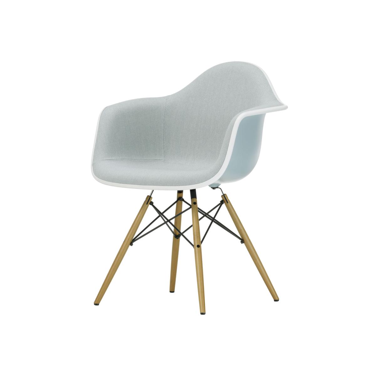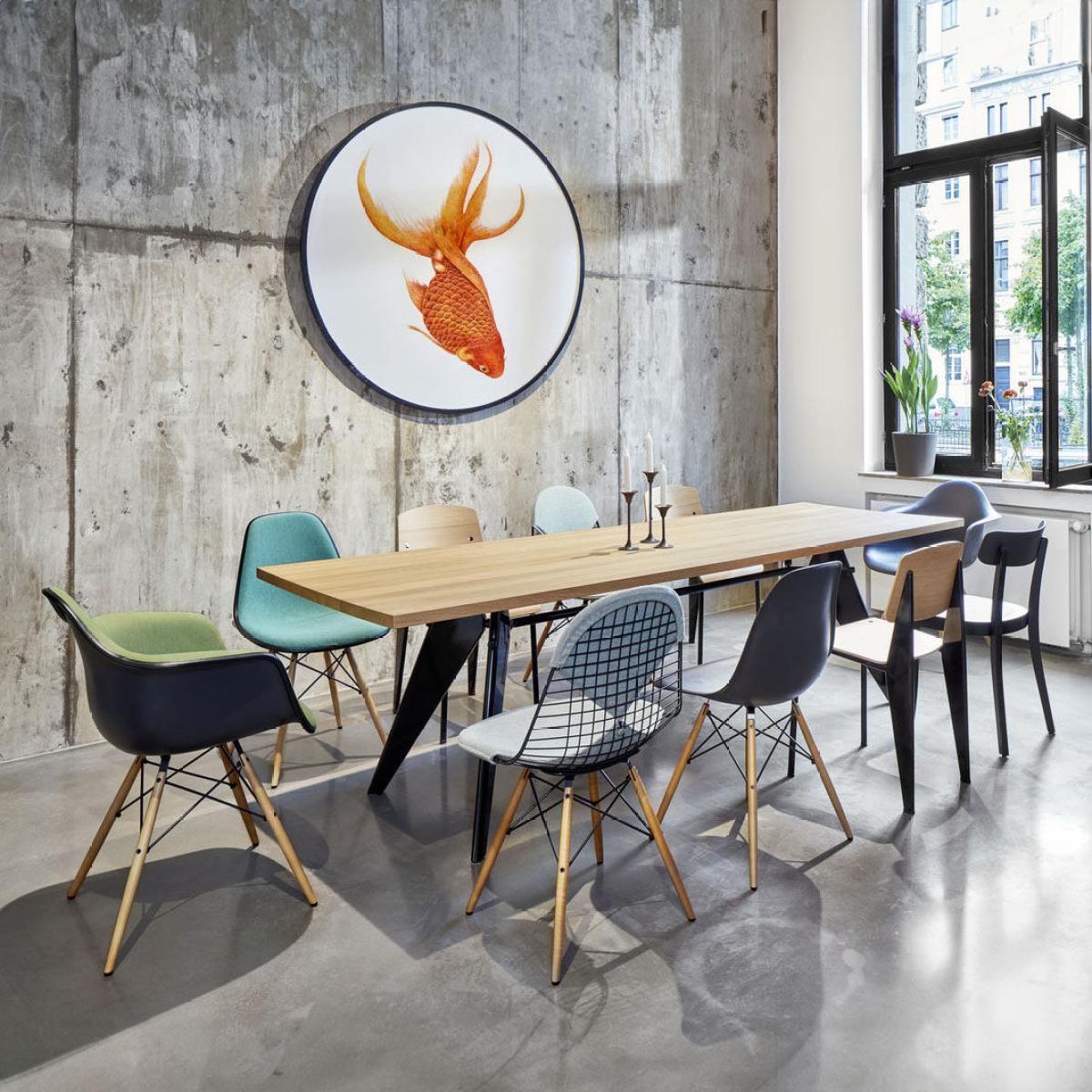 Treat yourself to an ORIGINAL iconic piece by Vitra. An original will always hold its value. It will stay with you for your whole life and outlast you, to be passed on to the next generation. Swiss design house Vitra is the only company authorised to manufacture Charles & Ray Eames products for Europe: if you own an Eames product manufactured by Vitra, you can be sure it’s an original. Design Icons are going green...Since January 2024 the shells of the famous Eames Plastic Chairs from Vitra have been made from recycled post-consumer plastic and are 100% recyclable. This family of chairs will now be known as Eames Plastic Chair RE. The recycling material used comes from household waste, primarily from used packaging collected as part of Germany's "Gelber Sack" (yellow bag) waste collection programme. Due to the composition of the recycled materials, the seat shells are interspersed with tiny specks of pigment. Charles and Ray Eames are two of the most important designers of the 20th century. The first plastic chairs to be mass-produced, the Shell Chairs by Charles and Ray Eames are among the major creations in the history of furniture. The idea of creating a one-piece moulded seat shell, adapted to the human body, was the focus of this pair of designers for many years. After experimenting with plywood and aluminium sheeting in the 1940s without producing satisfactory results, their search for alternative materials led them to discover glassfibre-reinforced polyester resin. This material, which was completely unheard-of in the furniture industry at the time, allowed moulded shells to be developed and refined up to mass production. This one-piece, organically shaped shell turned out to be a much-admired innovation at a time when chairs were, for the most part, composed of a seat and back. Fibreglass offered the added benefit of a pleasant feel and perfectly moulded shell for extraordinary comfort. After their initial presentation at the "Low Cost Furniture Design" competition, organized by the Museum of Modern Art in 1948, the Plastic Armchair and the Plastic Side Chair were launched in 1950 as the first, mass-produced plastic chairs. With the launch of this revolutionary creation, Charles and Ray Eames introduced a new type of furniture that has since spread around the world: the multifunctional chair whose shell can be combined with a wide variety of different bases. As early as 1950, Charles and Ray Eames presented a whole series of different bases with a remarkable design. For the Dining Height Armchair Wood Base (DAW), Charles and Ray Eames combined the organically shaped seat shell with a four-legged wooden base. The combination of plastic and wood gives the classic creation a warm feel and relaxed charm. Despite its compact dimensions, this chair offers pleasant comfort even for tall users. Its iconic shape is immediately identifiable. In this version, the seat interior is fully padded and the shell is covered with fabric. Today, Vitra manufactures DAW chairs by Charles and Ray Eames with two different shells : the Eames Plastic Armchairs RE have a recycled plastic shell while the Eames Fibreglass Chairs have a glass-fibre-reinforced polyester resin shell just like the first models. Due to the high quality of Vitra originals, the manufacturer offers a 10-year guarantee (register your product on the dedicated website to benefit from the extended warranty).
