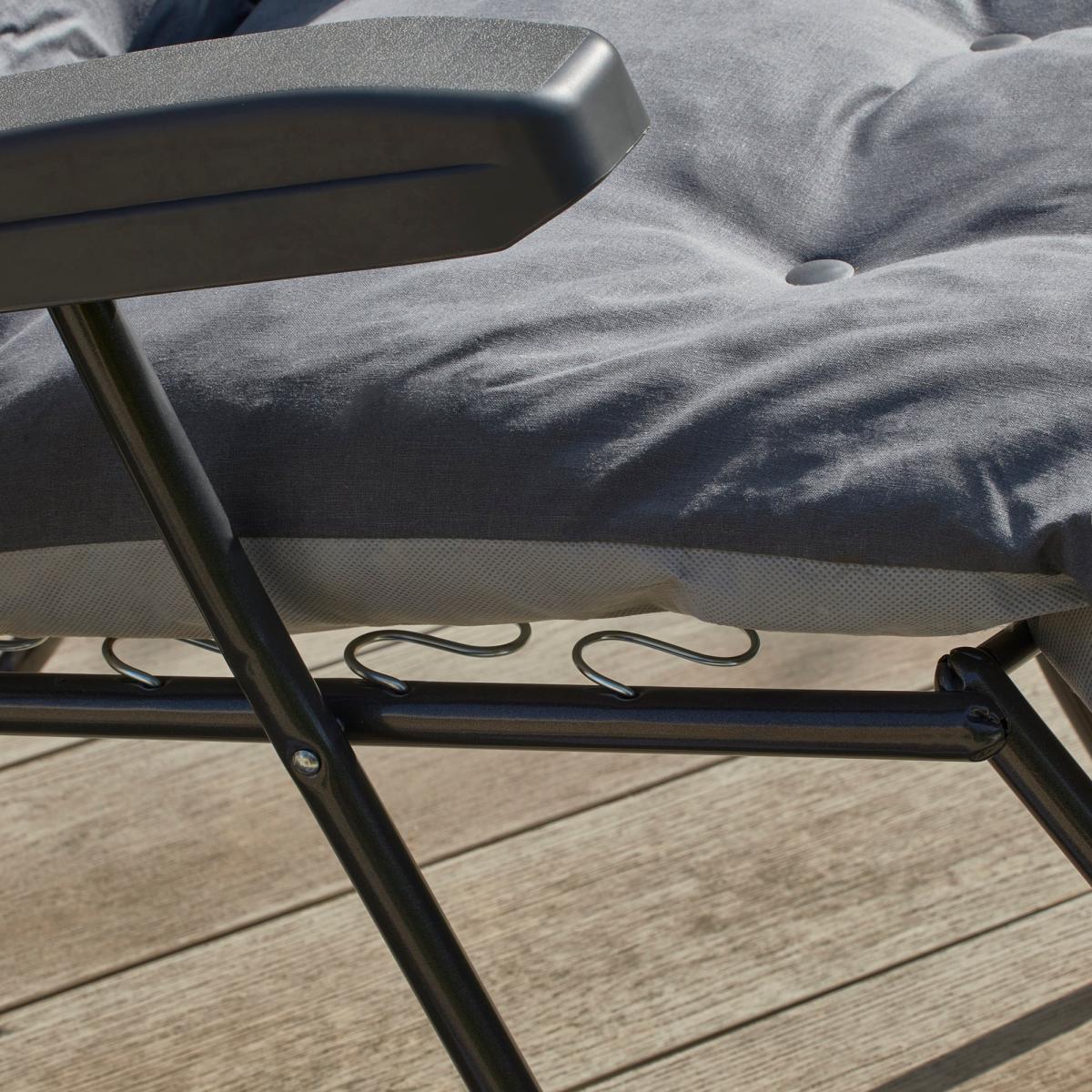 I really like this foldable lounger for its versatile and functional appeal. Its padded design adds comfort, making it perfect for both relaxing in a contemporary garden or on a more industrial patio setup. The charcoal colour works well with neutrals, greys, and even pops of colour for a modern look. Its foldaway feature makes it easy to store during the colder months or when not in use, which is especially practical for smaller outdoor spaces. For styling, consider pairing it with minimalist side tables, cosy cushions, or a throw for chillier evenings. It’s a sensible choice for anyone wanting a comfortable, low-maintenance piece that seamlessly transitions between garden lounging and easy storage.