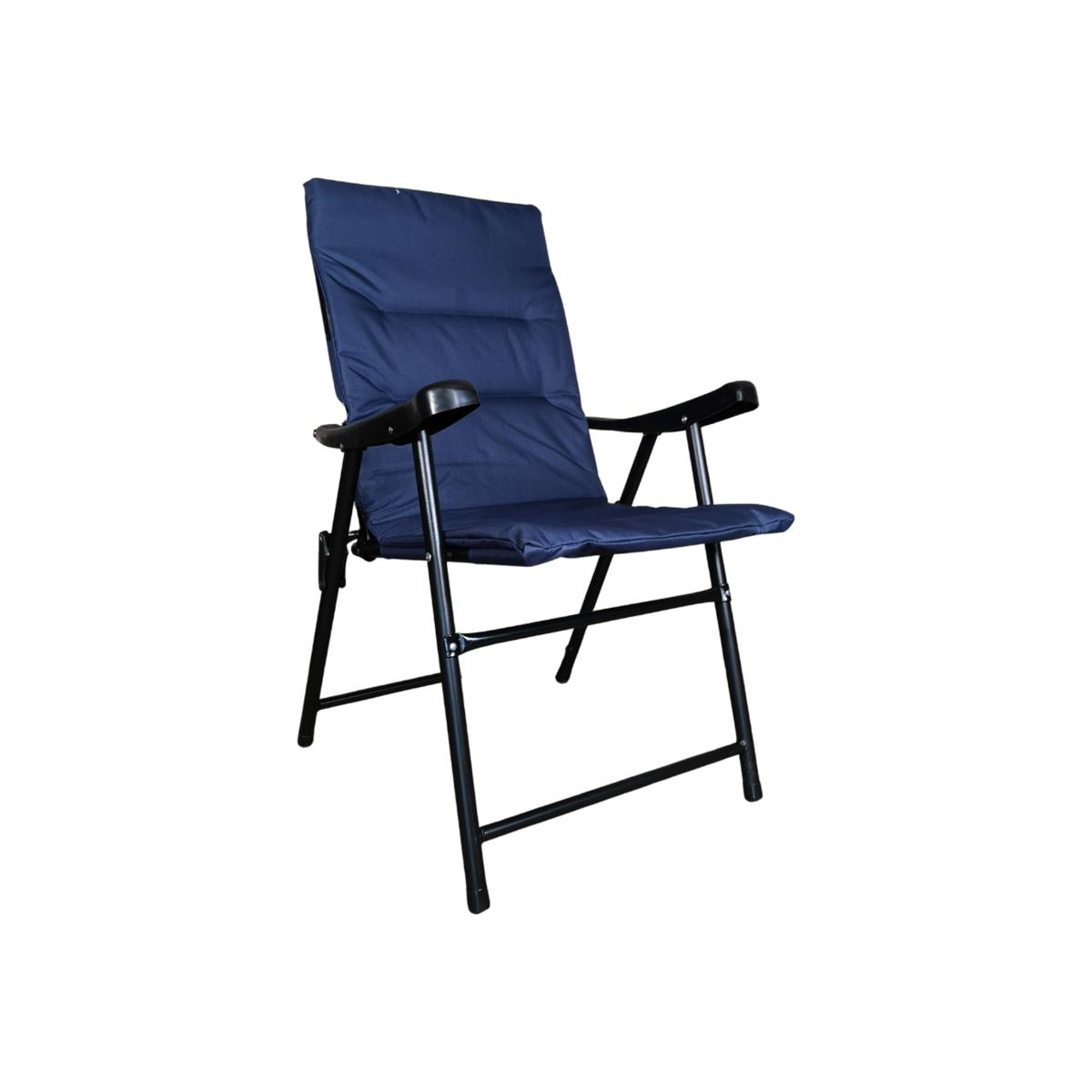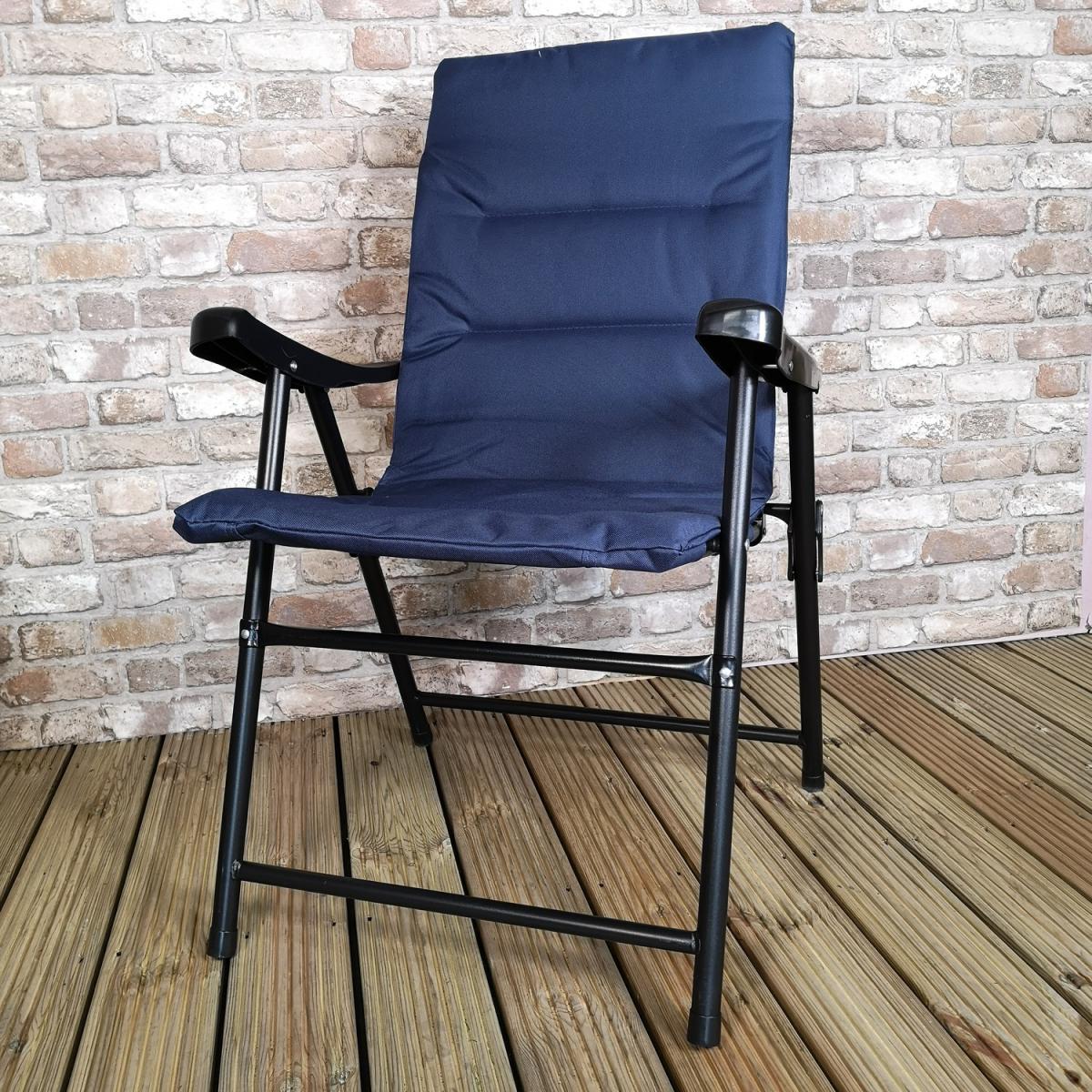 This padded folding garden chair is lightweight with a sturdy steel frame making it ideal for days out to the beach or camping trips in the caravan. Easy to fold down and pack away. Supplied with Navy padded cushions.