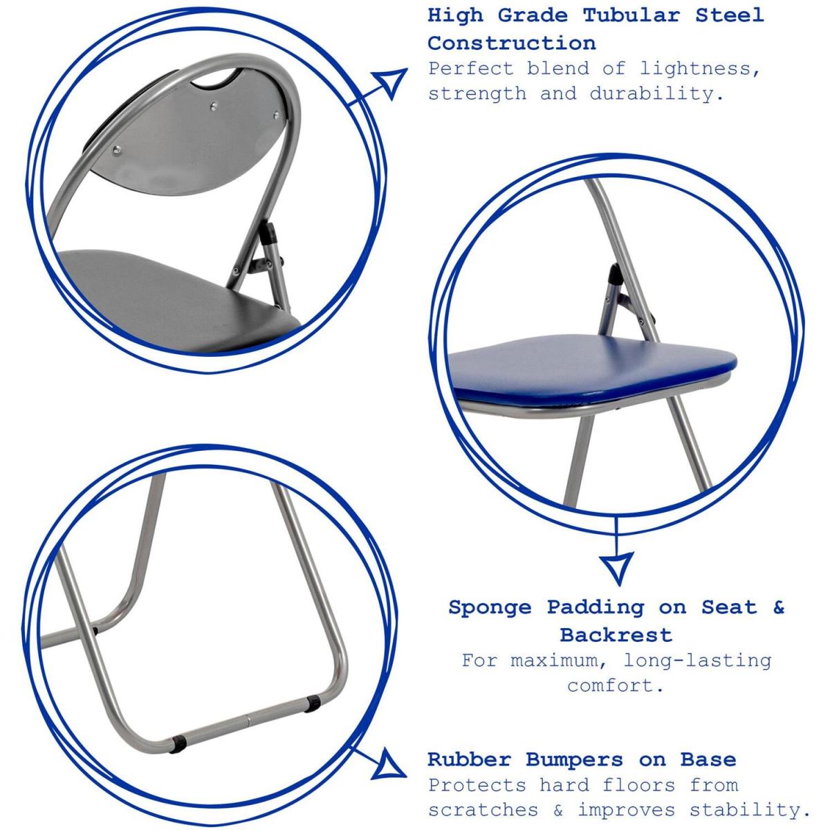 When guests come to call or you're throwing an event, you need to make sure everyone has a seat. These folding chairs let you provide a sturdy, comfortable chair for everyone on the guest list and will keep the decor of your event looking stylish. br br Until you're ready to set up, these chairs can stay folded away in an out of the way place. You simply won't find a more convenient seating solution! br br Heavy-duty tubular steel frame for support br br Ample padding on the back rest and seat for comfort br br Bumpers on the base to protect hard flooring br br Chair measures 91cm by 44cm by 5cm folded br br Opens to measure 78cm by 45cm by 52cm br br 45cm seat height br br Holds up to 18 stone (114kg) br br Don't fuss when it comes time to set up extra chairs in your dining room or backyard or at the school, village hall or church where you work! Avoid clutter with this stylish, supportive chair that folds.