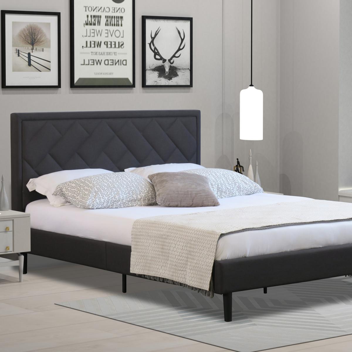 Padded Headboard Grey Fabric Bed Frame - Dark Grey / Double