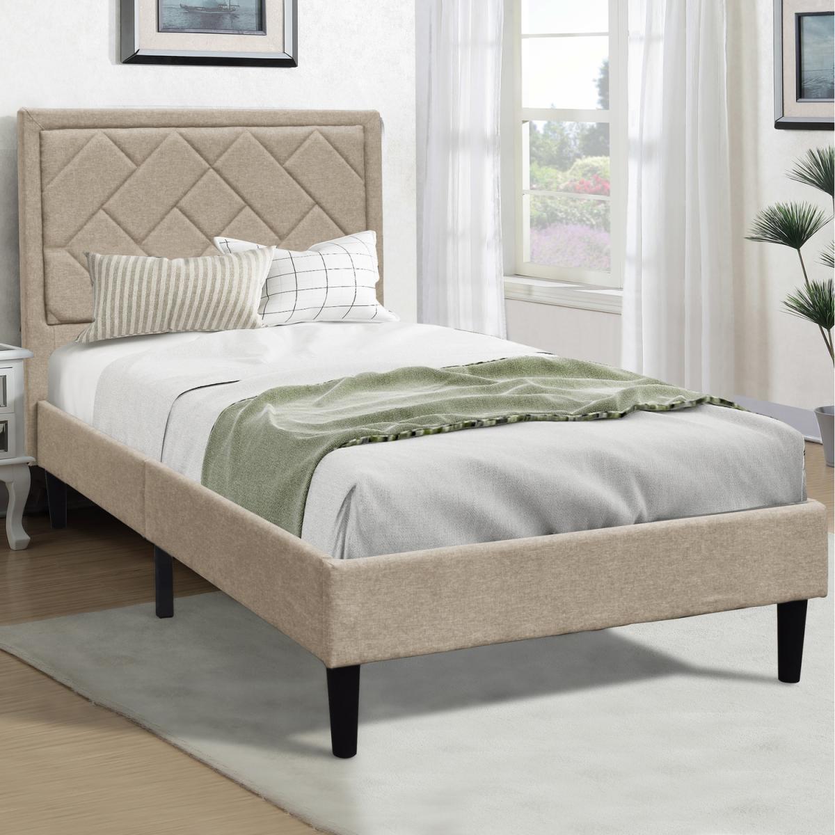 Padded Headboard Grey Fabric Bed Frame - Stone / Single