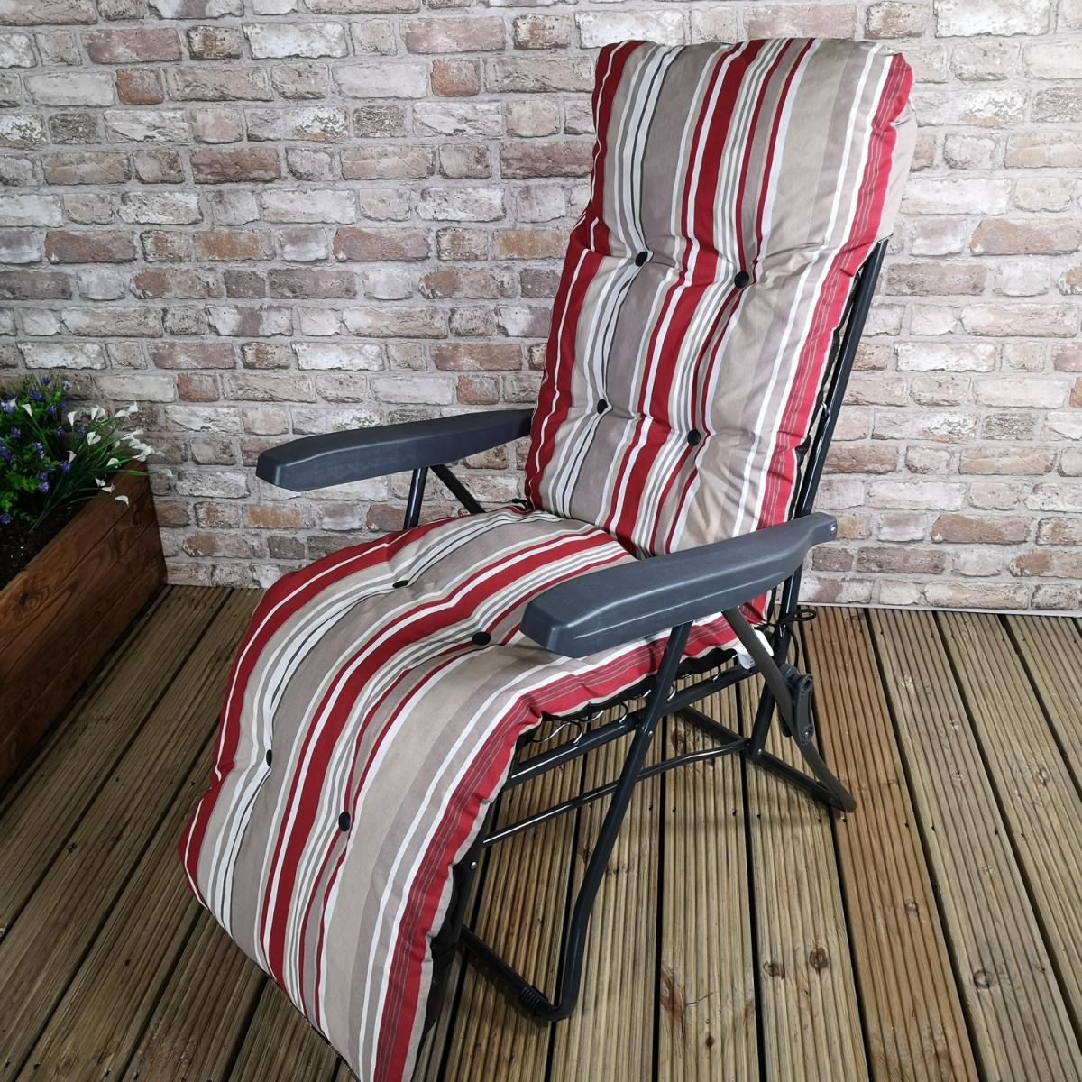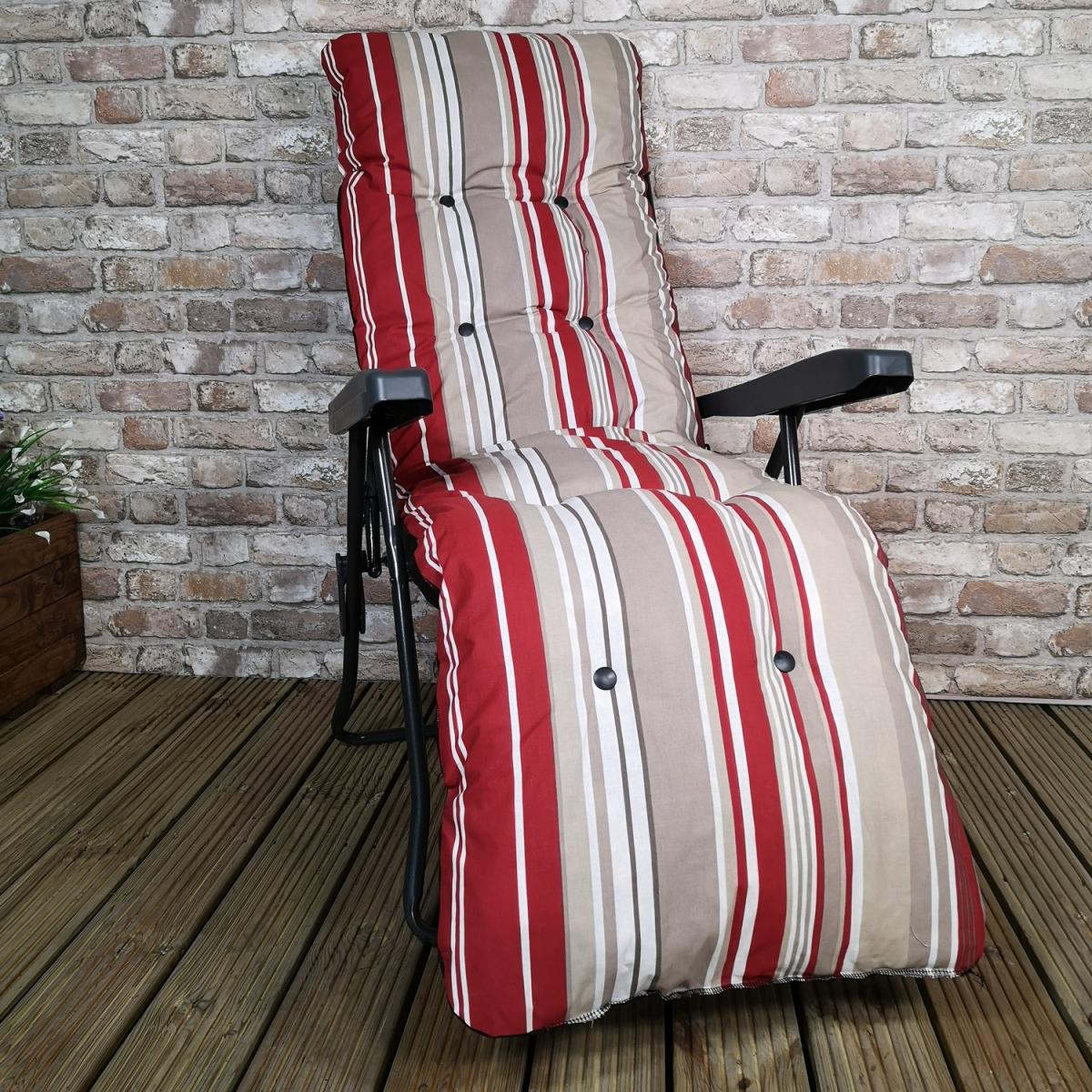 Padded Outdoor Garden Patio Recliner Sun Lounger - Red / 20cm