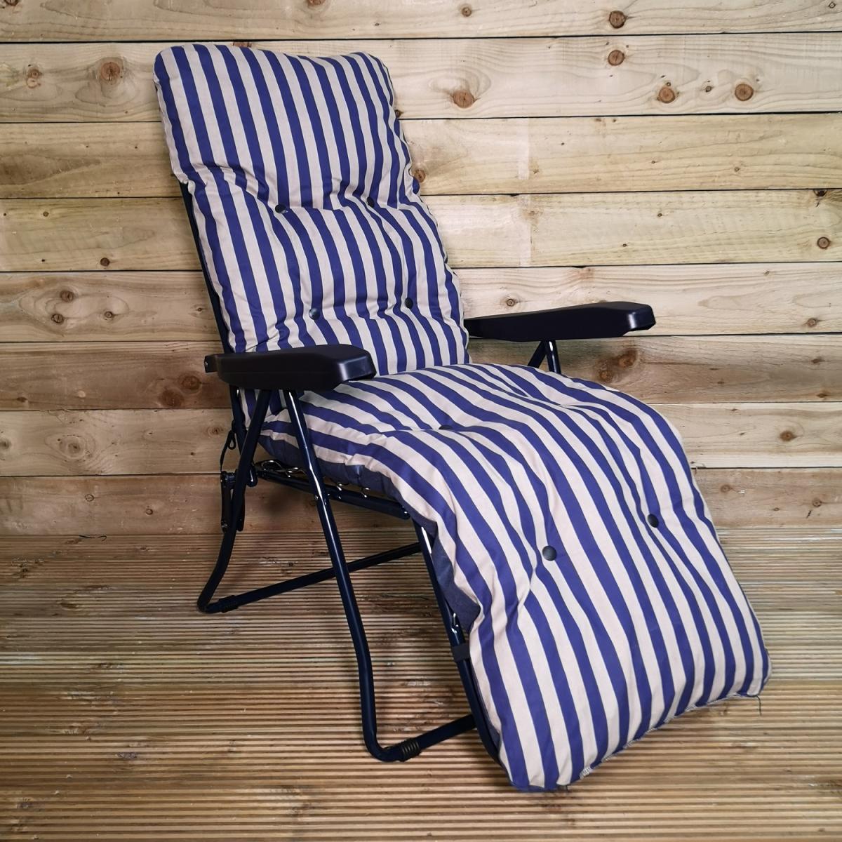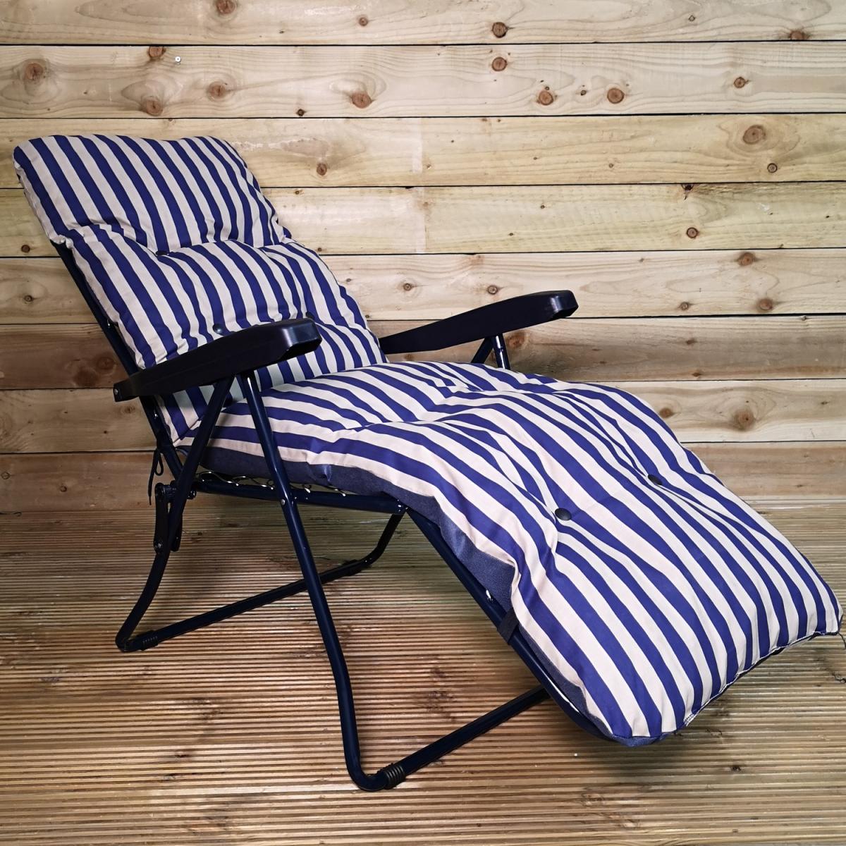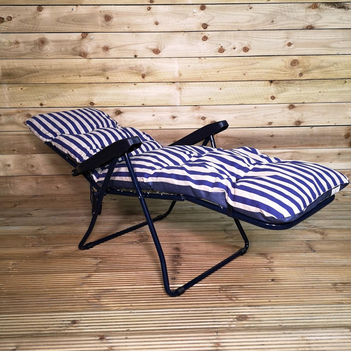 Padded Outdoor Sun Lounger with Blue Stripes - Blue and White