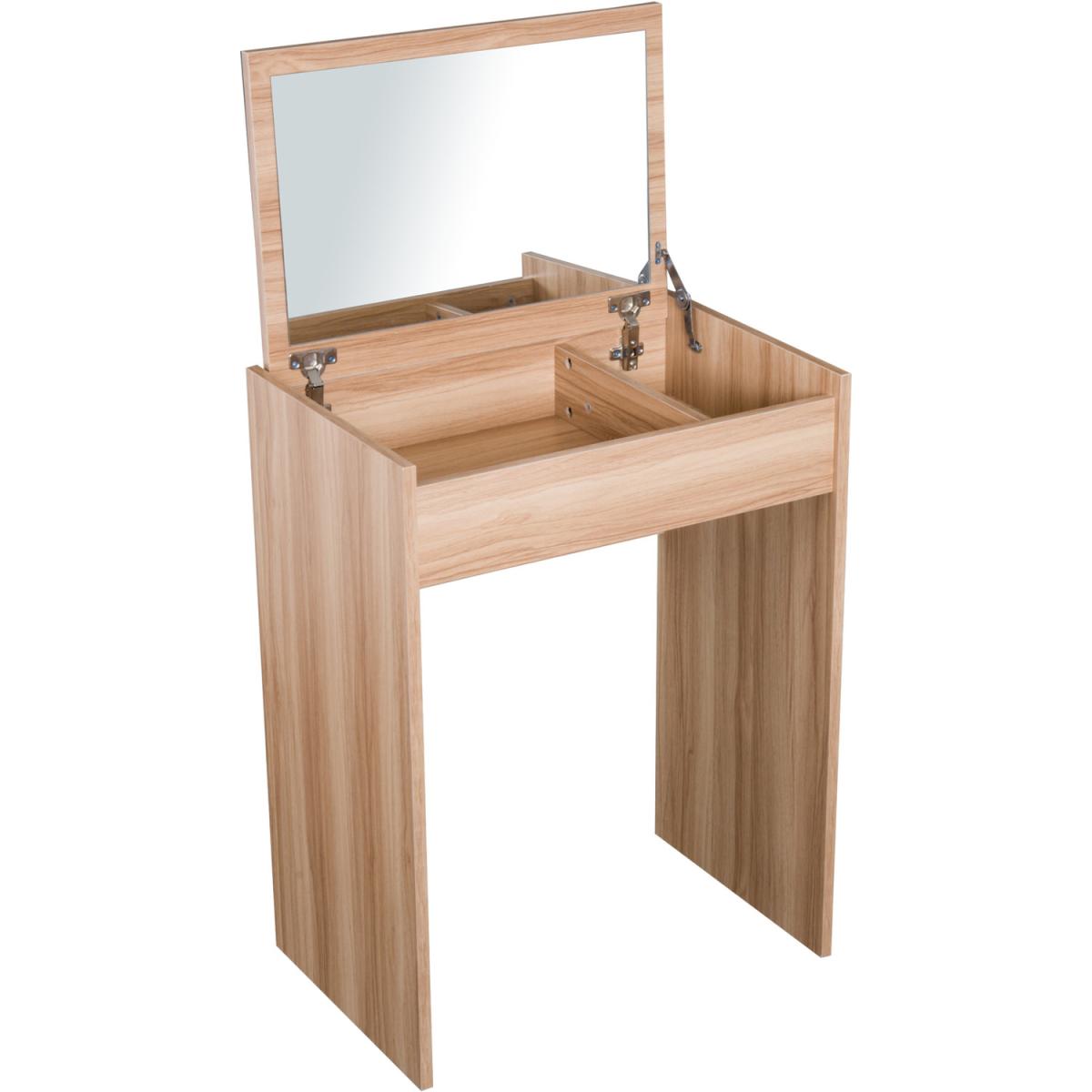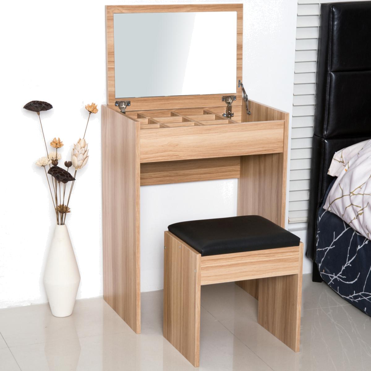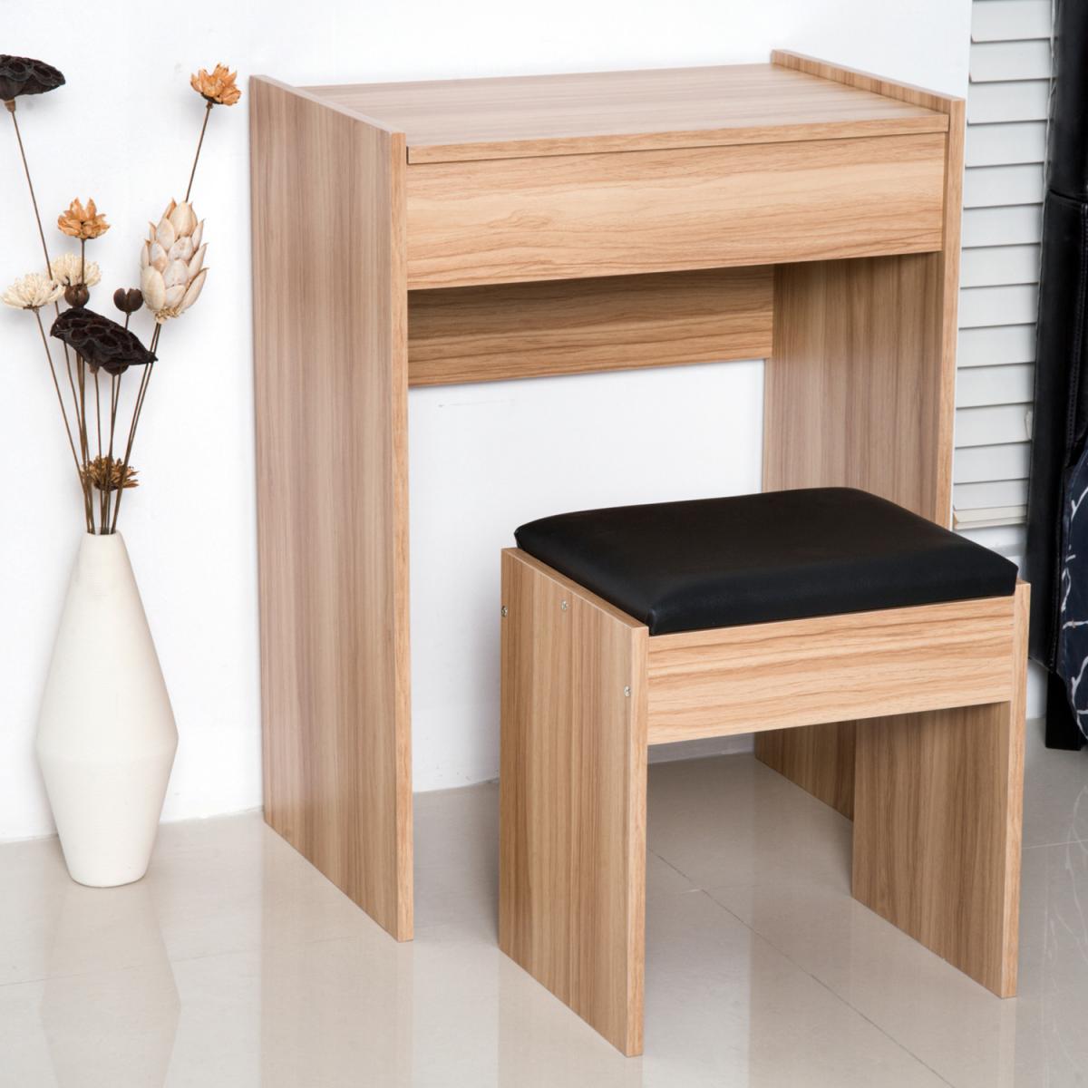 A stylish dressing table set from HOMCOM comes with a multi-purpose dressing table and a padded stool. The flip-up design allows you to easily convert the dressing table with a mirror to an ideal writing desk with hidden storage space under the lid. The removable space divider enables you to organise your items neatly in place. With smooth leather and a soft sponge, the padded stool provides added comfort. Constructed with 16mm-thick E1 chipboard, the table set features are easy-to-clean veneer and ensures long-lasting use.