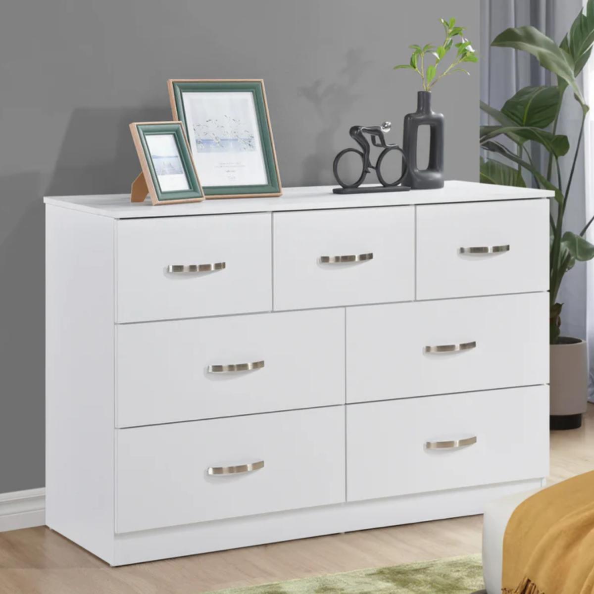 The Paddington 7 Drawer Chest offers a perfect blend of style and practicality, making it a versatile addition to any bedroom. With three smaller drawers for organising essentials and four larger drawers for bulkier items, this chest provides diverse storage to keep your space neat and tidy. Finished in a fresh white design, it comes with your choice of chrome or black handles, allowing you to tailor the look to your interior style. Bright, modern, and designed to suit any decor, the Paddington Chest pairs beautifully with the Paddington 6 Door 2 Drawer Mirrored Wardrobe for a coordinated bedroom look.
