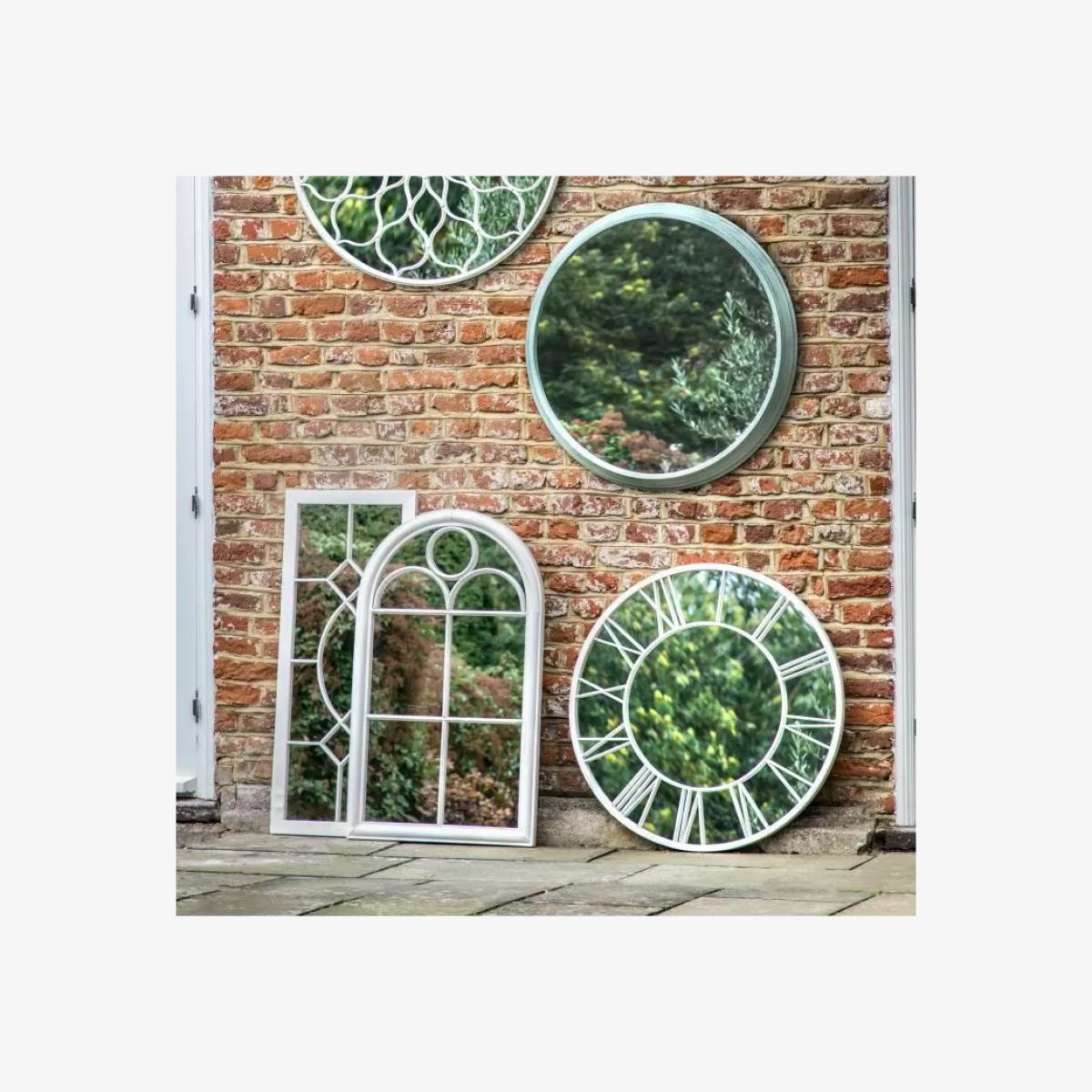 Add a little romantic charm to your garden with this chic outdoor mirror. Simple and chic this large round mirror with its mint trim frame will add a elegant finishing touch to your outdoor space. Perfect for creating the feeling of light and space in even the smallest darkest corners of your garden, balcony or patio area. Material:Iron / Glass / PVC. Colour/Finish: Mint.