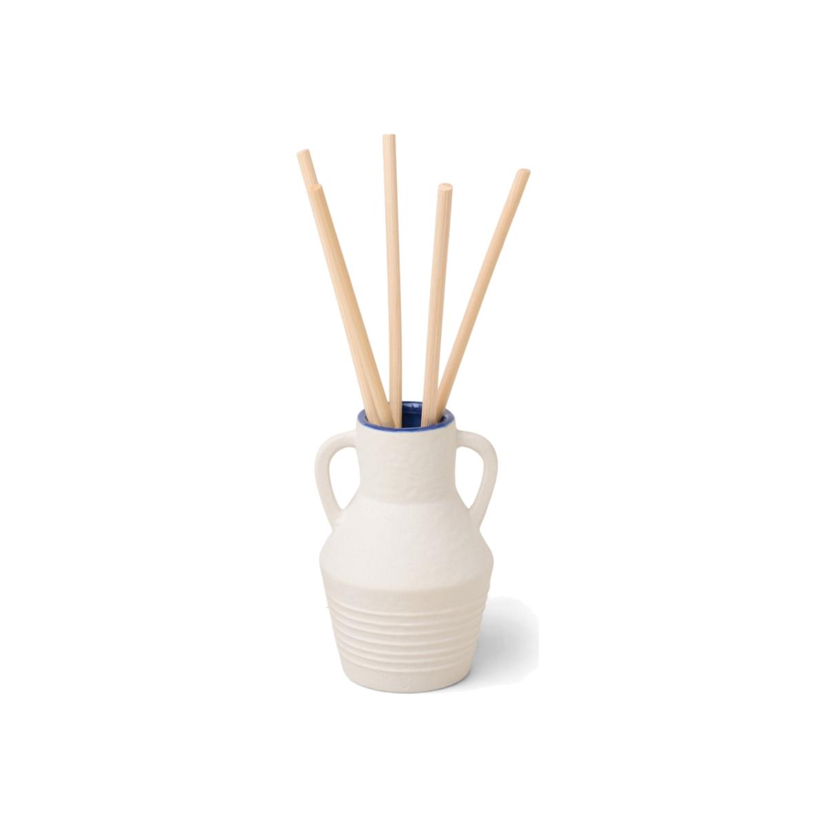 Escape to an island in the Aegean Sea with the Santorini collection. Influenced by timeless texture, this collection will transport you to a volcanic island of pure paradise. After enjoying the Santorini-inspired scents, these unique diffuser vessels can be repurposed as stylish storage vases. Top Notes: Citrus, Fresh Eucalyptus, Thyme, Aldehydic. Middle Notes: Rose, Clove, Orris. Base Notes: Cedarwood, Sandalwood, Leathery. Cliff & Hinoki Wood scent. Reed Material: Natural Wood Reeds. Includes Gift tube, ceramic diffuser, natural wood reeds, and 4oz scented oil. Gift boxed. 118ml capacity. Size H19.2, W6.5, D6.5cm. Diameter 6.5cm.