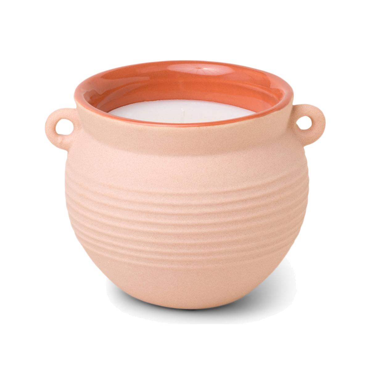 Escape to an island in the Aegean Sea with the Santorini collection. Influenced by timeless texture, this collection will transport you to a volcanic island of pure paradise. After enjoying the Santorini-inspired scents, these unique large vessels can be repurposed as stylish storage vases. Inspired by the textures, colours, and fragrances of Santorini. Textured ceramics with inspired details, ribbing and handle details that resemble pottery jugs. Glossy glaze on the inside with a different colour textured glaze on the outside. Repurpose as a catchall or planter. Black Fig & Olive scent. Soy wax. Approximate burn time 55 hours. Size H9, W12, D12cm. Diameter 12cm.