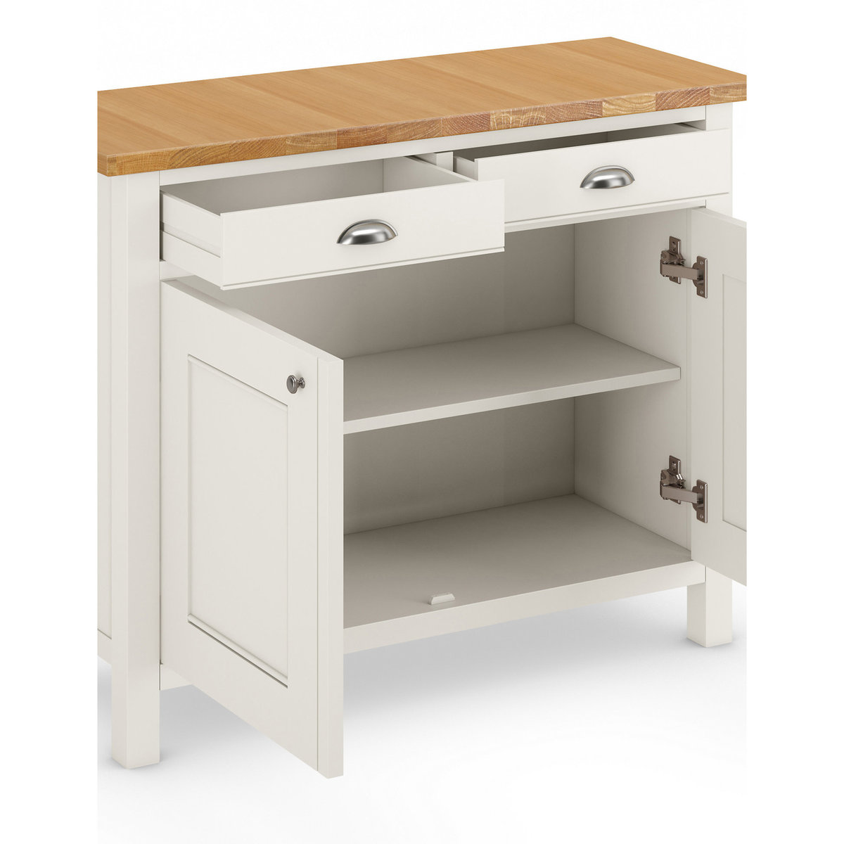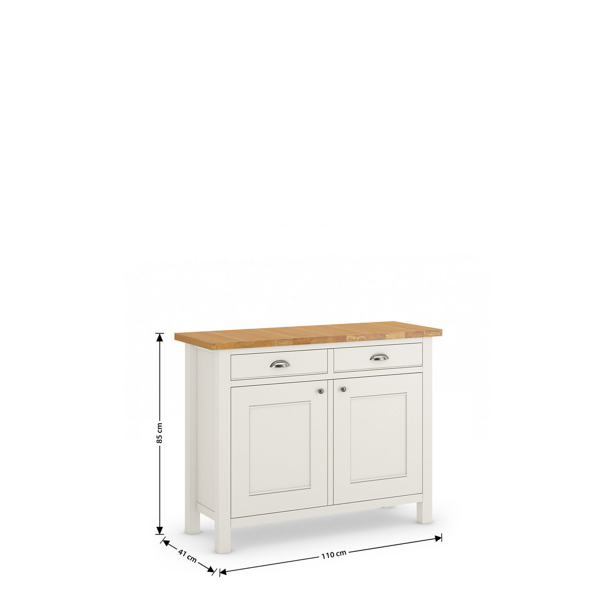 Clean, contemporary lines combine with a rustic aesthetic in this two-door Padstow sideboard. As well as two handy drawers, it also features internal shelf space for the perfect storage solution. A natural oak veneer top is complemented by an all-over ivory-painted finish and a low-sheen lacquer for added durability. Coordinating Padstow pieces are available. We're so confident our furniture is built to last, our industry-leading guarantee covers any manufacturing failure on all furniture. That's our promise, and why our furniture comes with a 10-year guarantee that you can trust. Excludes: outdoor furniture and any issues that are a result of normal wear and tear, improper care or accidental damage.