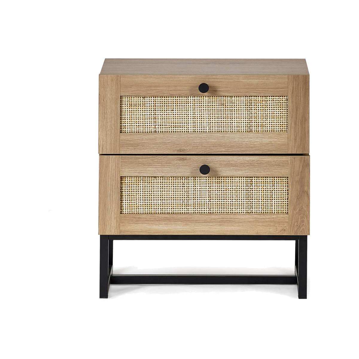 Padstow Industrial Rattan 2 Drawer Bedside Table - Julian Bowen