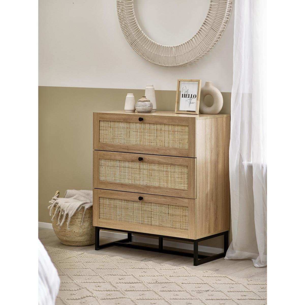 I’m a big fan of the Padstow chest for its blend of natural rattan panels and a sturdy metal base - it brings warmth and structure without feeling too rustic or too urban. It sits well in coastal-inspired living rooms, Scandi bedrooms or even industrial loft spaces, thanks to its neutral oak finish and clean lines. For styling, group it with a low-slung lamp, a couple of small potted plants and a stack of coffee-table books, keeping the top surface clutter-free so those woven fronts really stand out. Inside the drawers, use fabric boxes or trays to divide smaller items like scarves, stationery or tech cables for a neat finish.