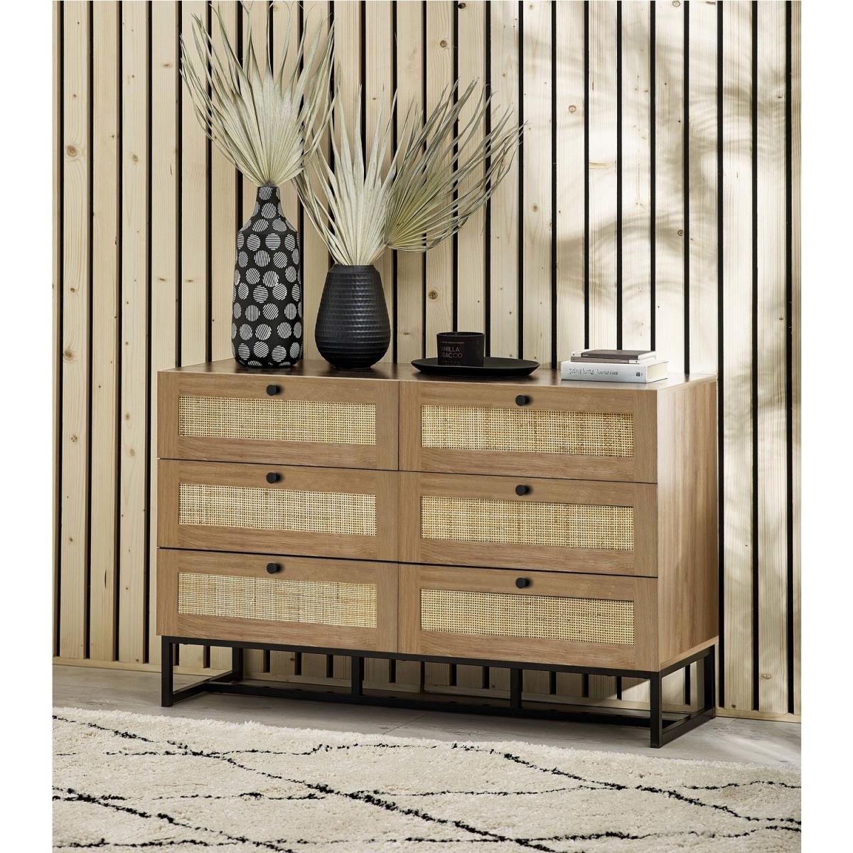Padstow Industrial Rattan Wide Chest of 6 Drawers - Julian Bowen