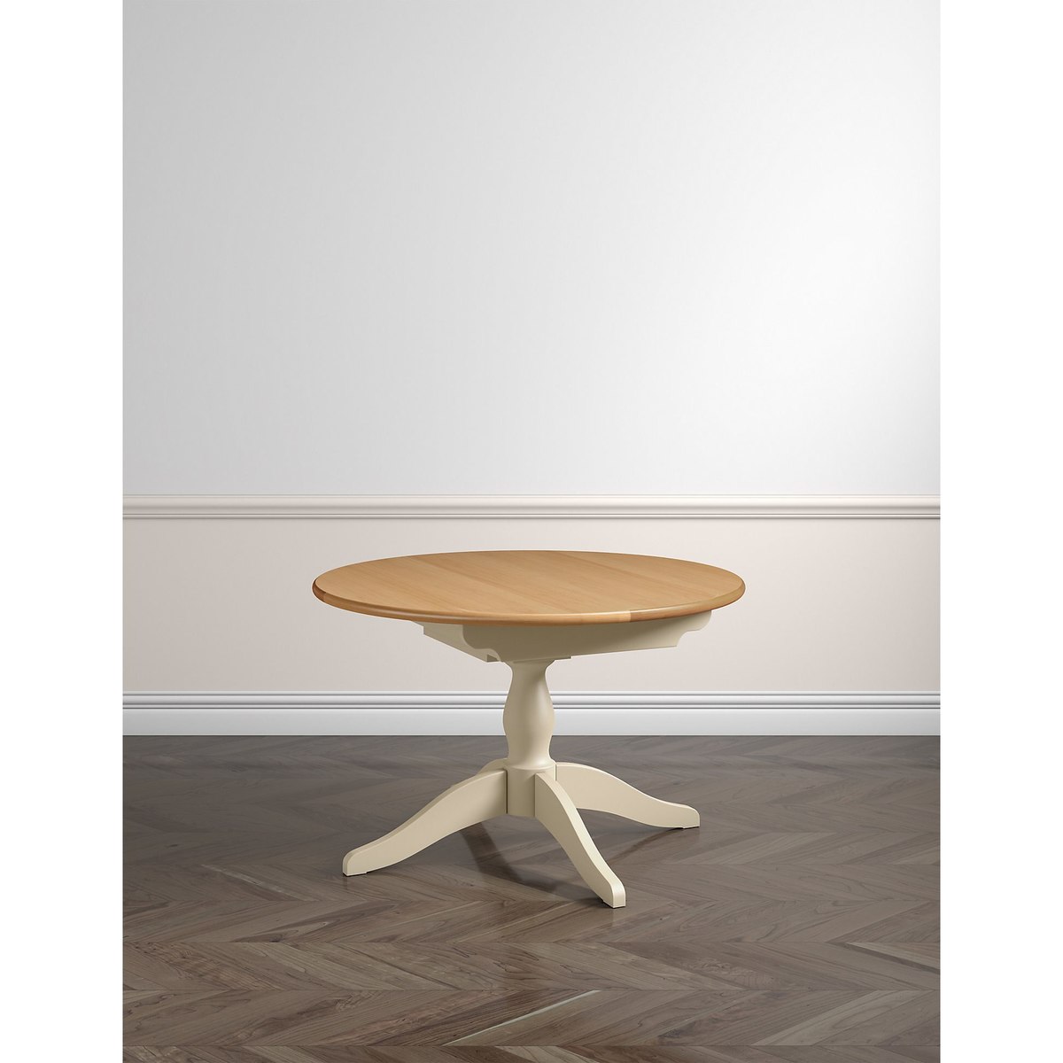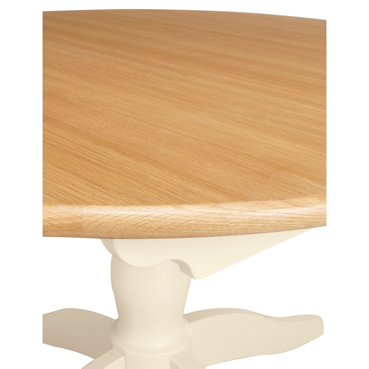 There's more than meets the eye with this understated, versatile round table from the Padstow furniture range. Ideal for smaller spaces, this classic extendable table has the option to expand when you're entertaining guests. Robustly crafted with sustainably sourced oak, the cream painted and lacquered base beautifully contrasts with the veneer top for a charming finish. This stylish dining table is a timeless piece and a welcome addition to your kitchen or dining area.