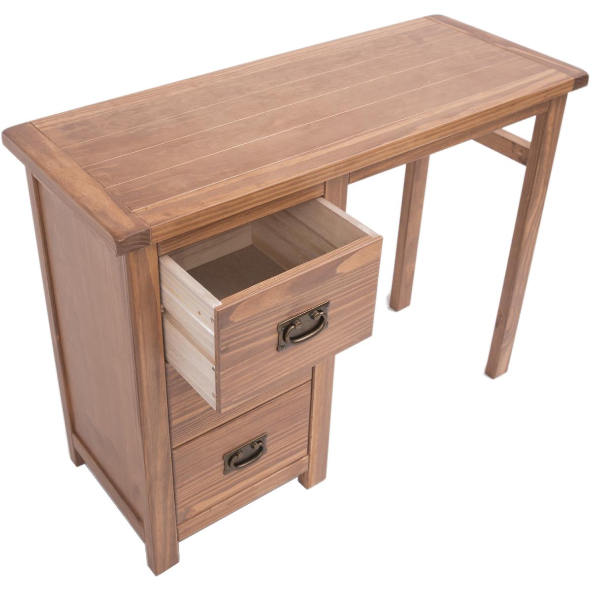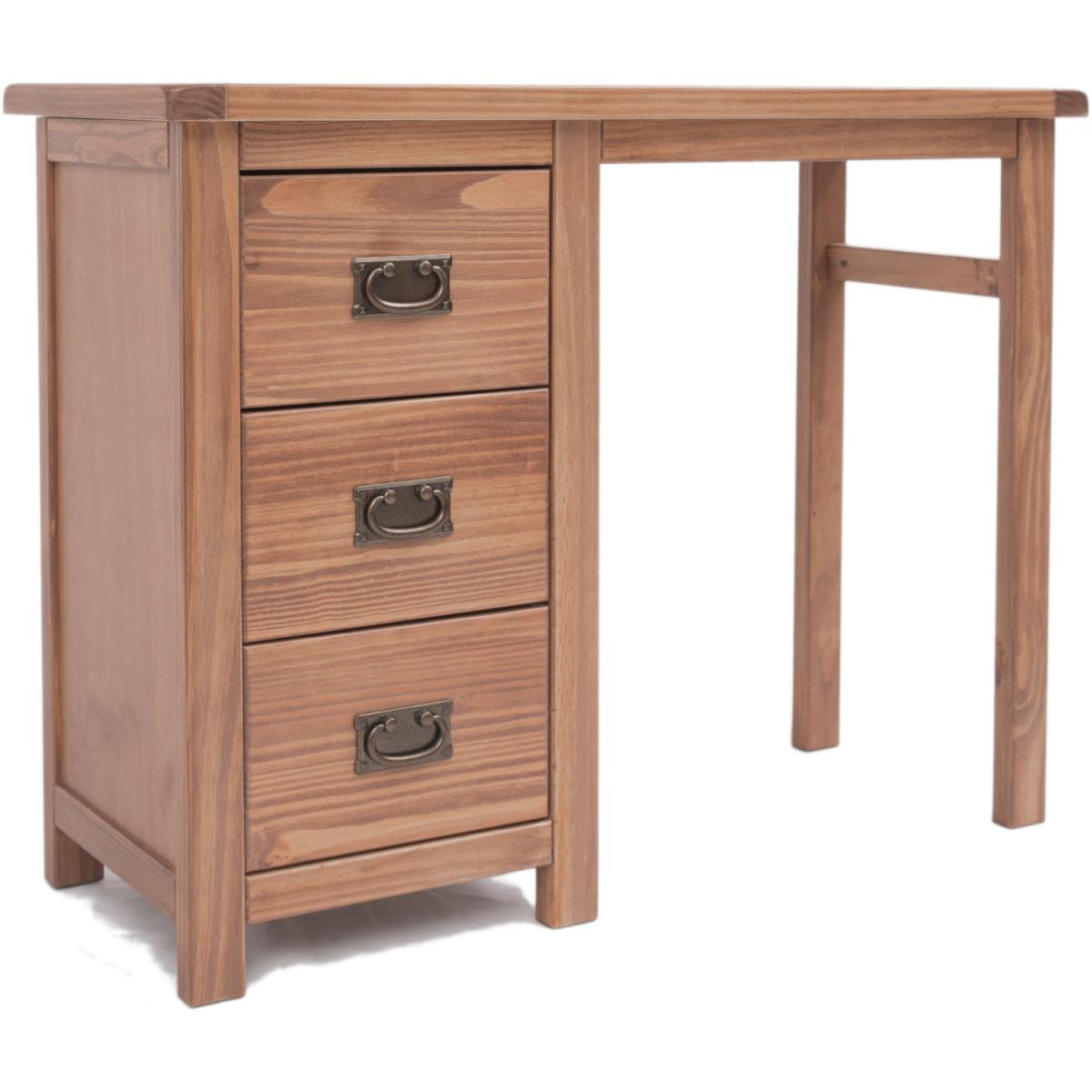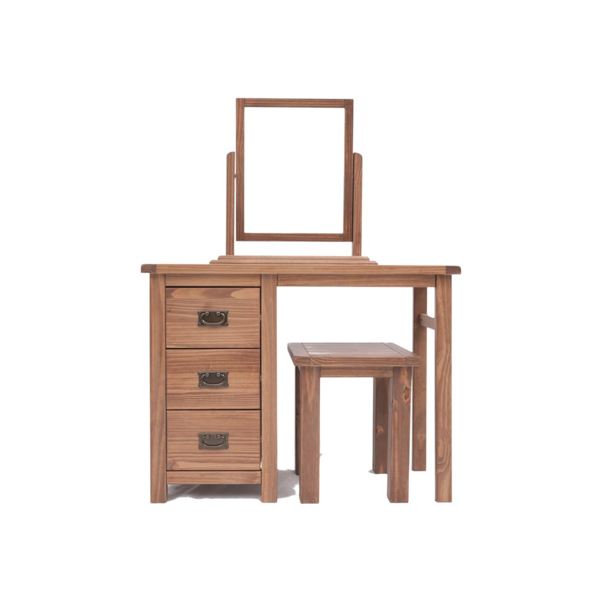 Our Padua collection has a simple but pleasing design and is produced by our skilled craftsmen to the highest standards using responsibly sourced solid wood and veneers. All items are made using a combination of solid pine wood and veneers and are carefully hand-finished in a light brown colour using a high-quality eco-friendly water-based lacquer. The Padua 3 drawer dressing table set is the perfect choice for your bedroom. It comes complete with a dresser, stool and mirror. It offers 3 deep drawers made with a solid wood frame and it comes with a choice of 2 different handles. The mirror swivels to adjust to your height. The dresser top has a 3cm thick solid wood frame, making it extremely sturdy. Added to these features is a simple construction for easy home assembly, making it a great value product to be taken home today.