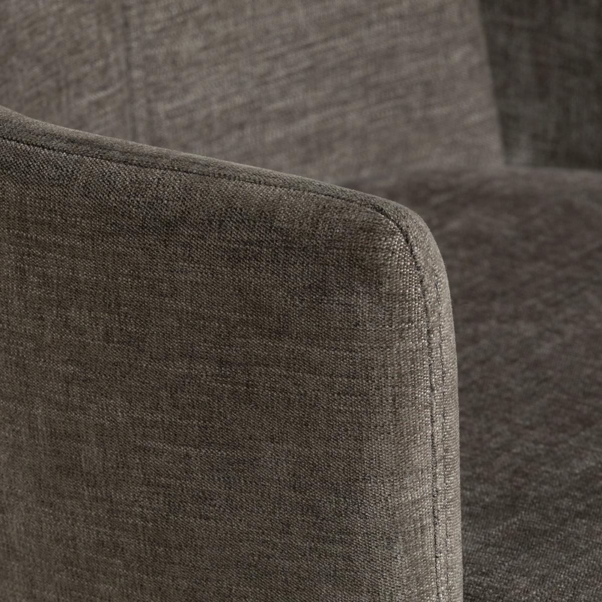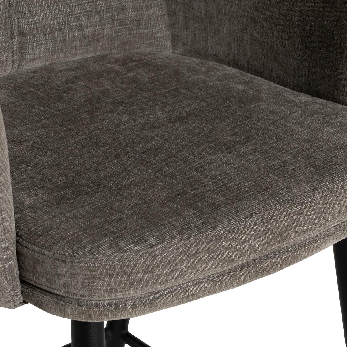 I love this one for its versatile appeal; the grey fabric is neutral yet sophisticated, making it easy to blend into a range of interiors from modern to more traditional schemes. Its upholstered back and arms provide comfort, while the sleek black metal legs lend a contemporary edge. It works particularly well in kitchens or home bars that feature a minimalist or industrial style but can also soften more eclectic spaces. For styling, pair it with a marble or wooden breakfast bar, and consider adding some textured cushions for extra comfort and visual interest. To keep it looking fresh, choose a fabric cleaner suited for upholstery, and it’ll be a practical and stylish addition to your space.