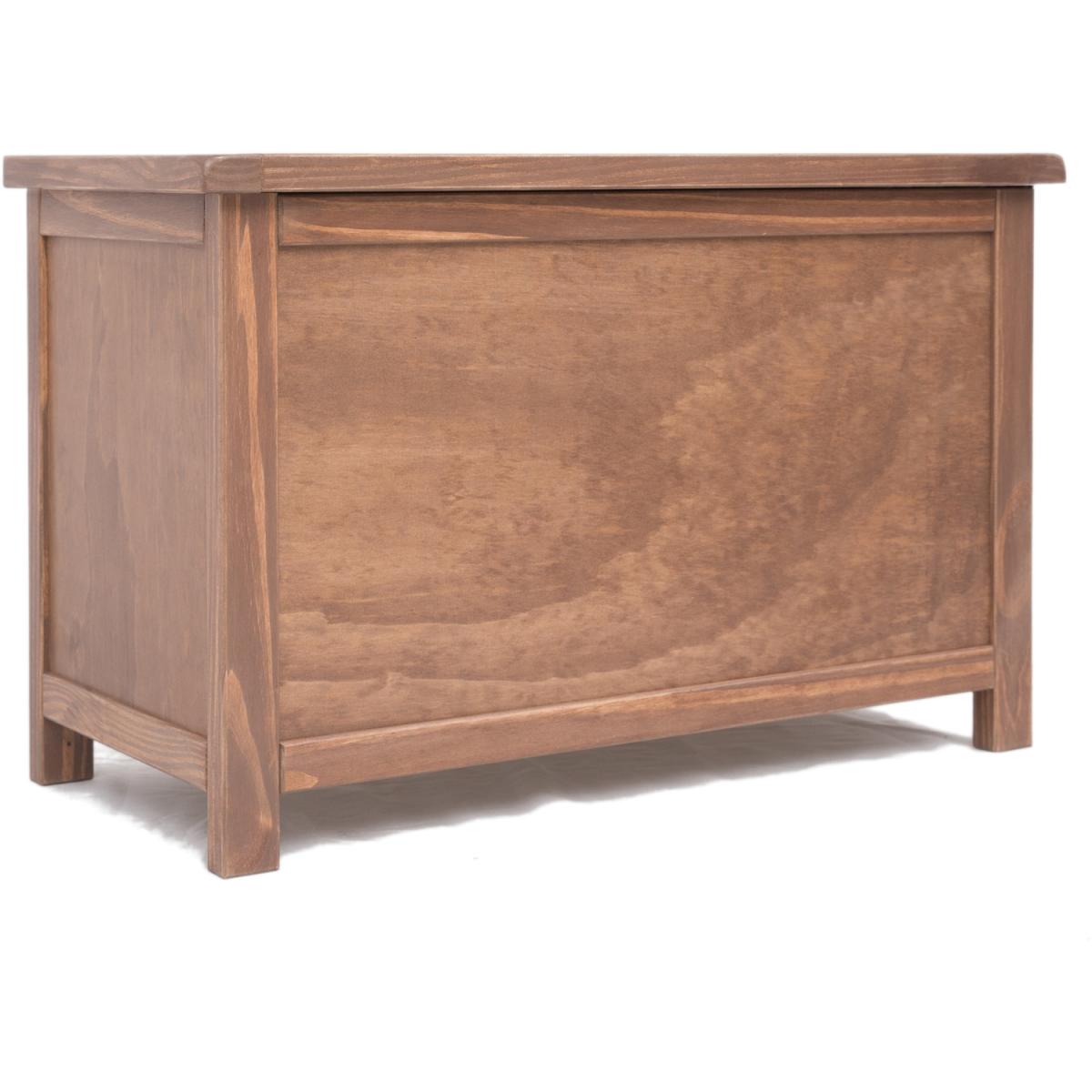 Our Padua collection has a simple but pleasing design and is produced by our skilled craftsmen to the highest standards using responsibly sourced solid wood and veneers. All items are made using a combination of solid pine wood and veneers and are carefully hand-finished in a light brown colour using a high-quality eco-friendly water-based lacquer. The Padua ottoman is the perfect item to fit in small areas, but still offers plenty of storage space for all your essentials. It comes with a safety holder to avoid accidents and it is made with a solid wood frame and veneer panels, making it very strong and stable, guaranteeing it will last for a long time. The top has a 3cm thick solid wood frame, making it extremely sturdy. Added to these features is a simple construction for easy home assembly, making it a great value product to be taken home today.