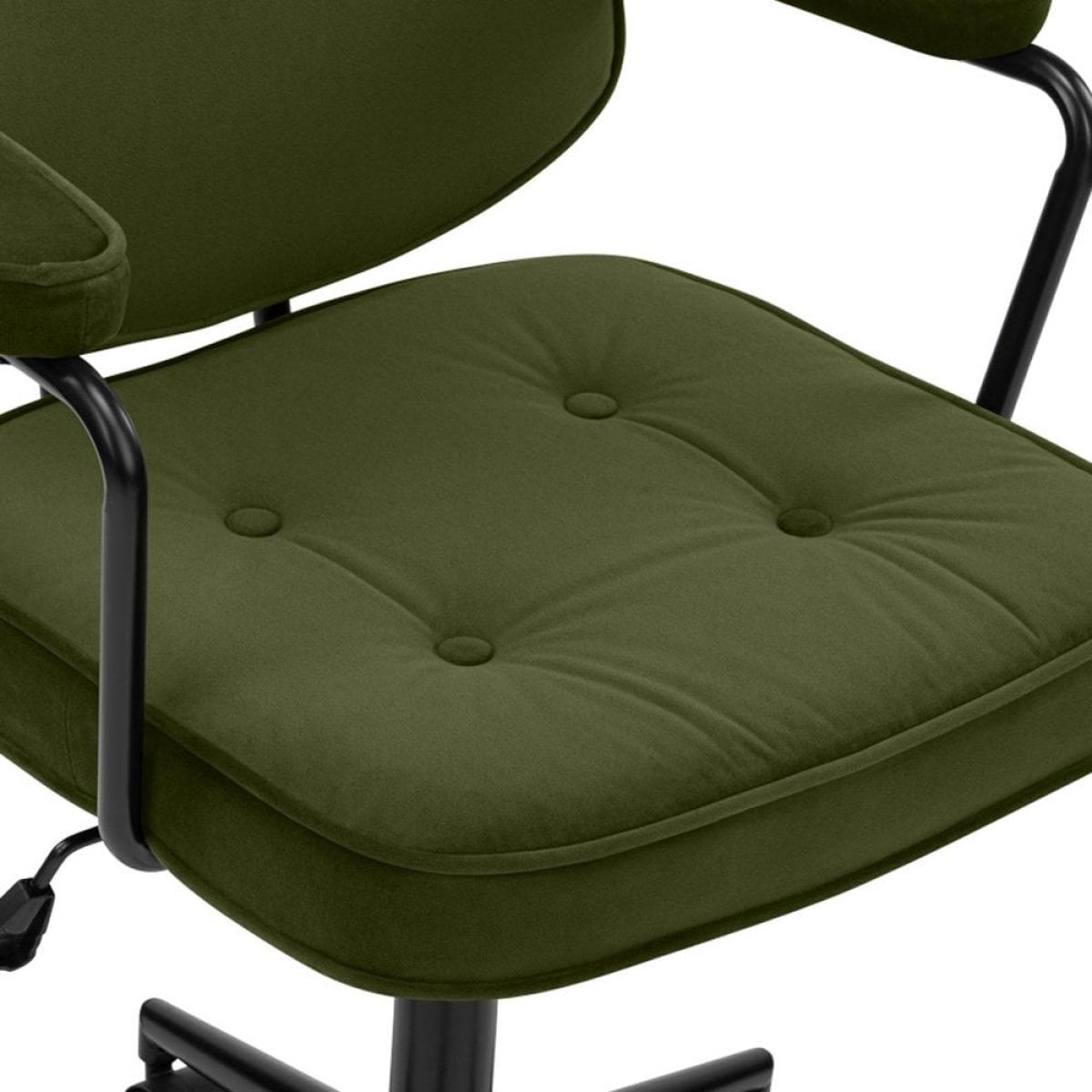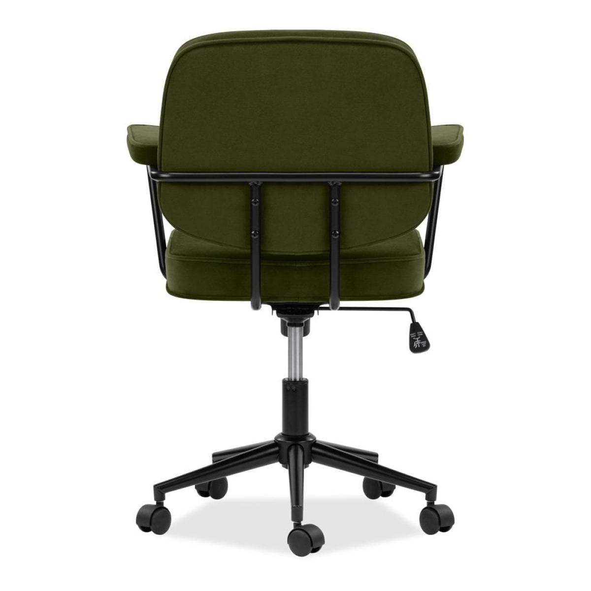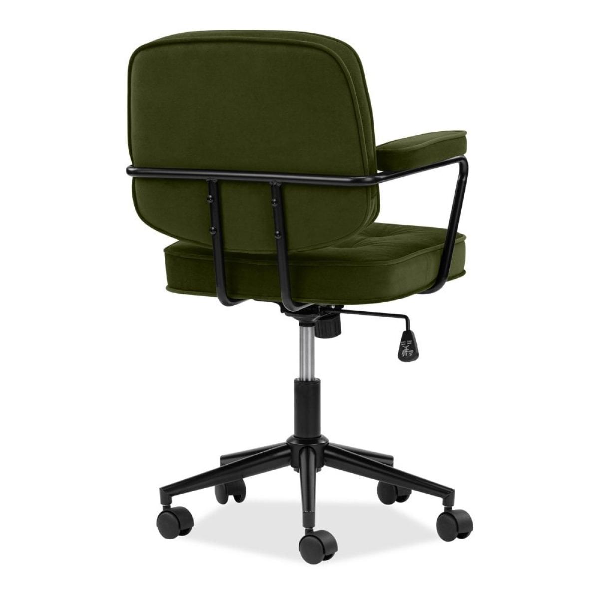 I love this office chair for its rich olive green velvet, which adds a touch of luxury and warmth to any workspace. It works particularly well in both contemporary and vintage-inspired interiors, where its colour can be complemented with brass or wood accents. Practical styling tips include pairing it with a sleek glass or wooden desk to keep the look modern, or contrasting with cosy textiles like textured throws or patterned rugs for a more eclectic feel. Its sustainable fabric also makes it a thoughtful choice for those looking to incorporate eco-friendly elements into their home office. Overall, this is a versatile piece that combines comfort with stylish appeal.