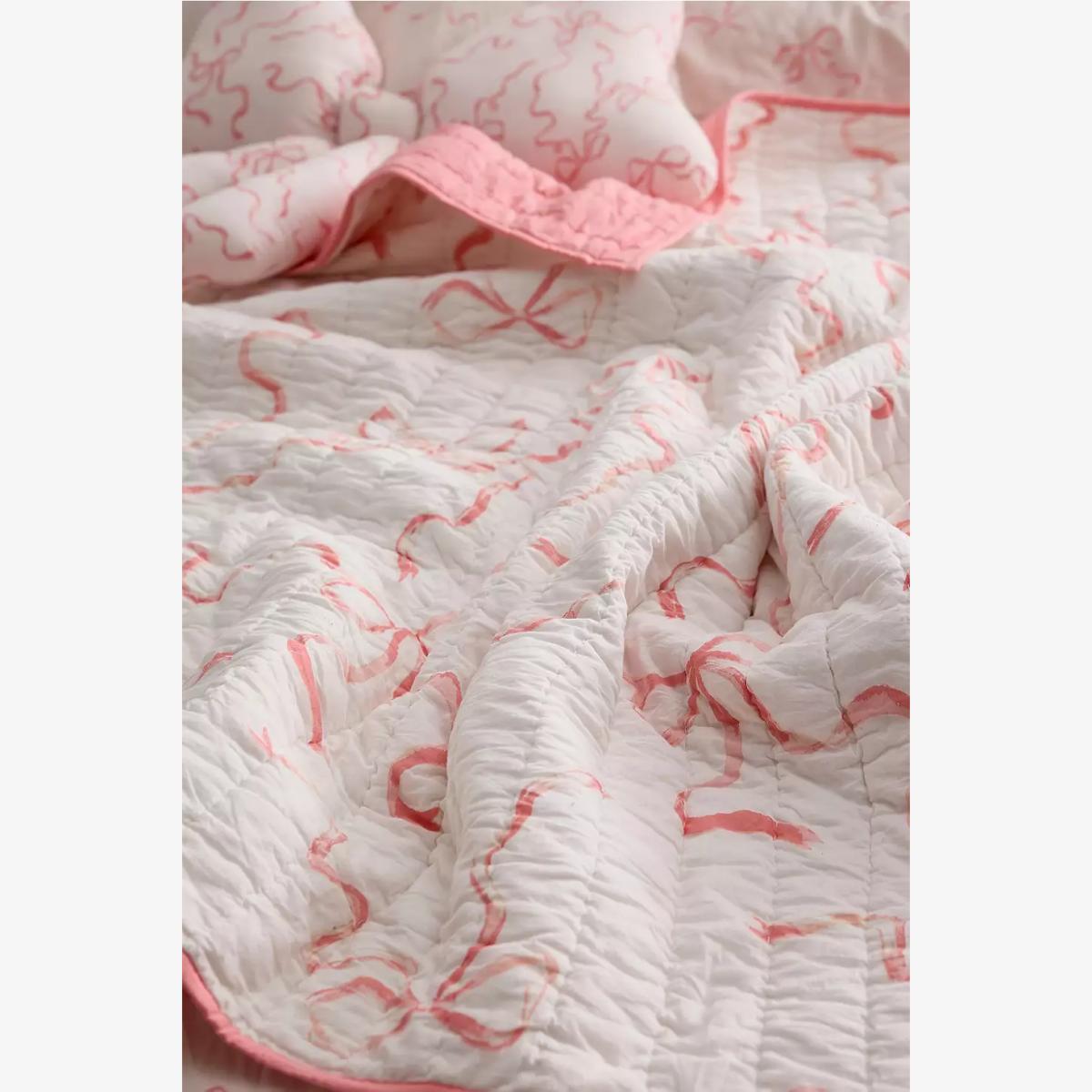 Painted Bow Quilted Throw - Pink 127cm x 152cm at Urban Outfitters