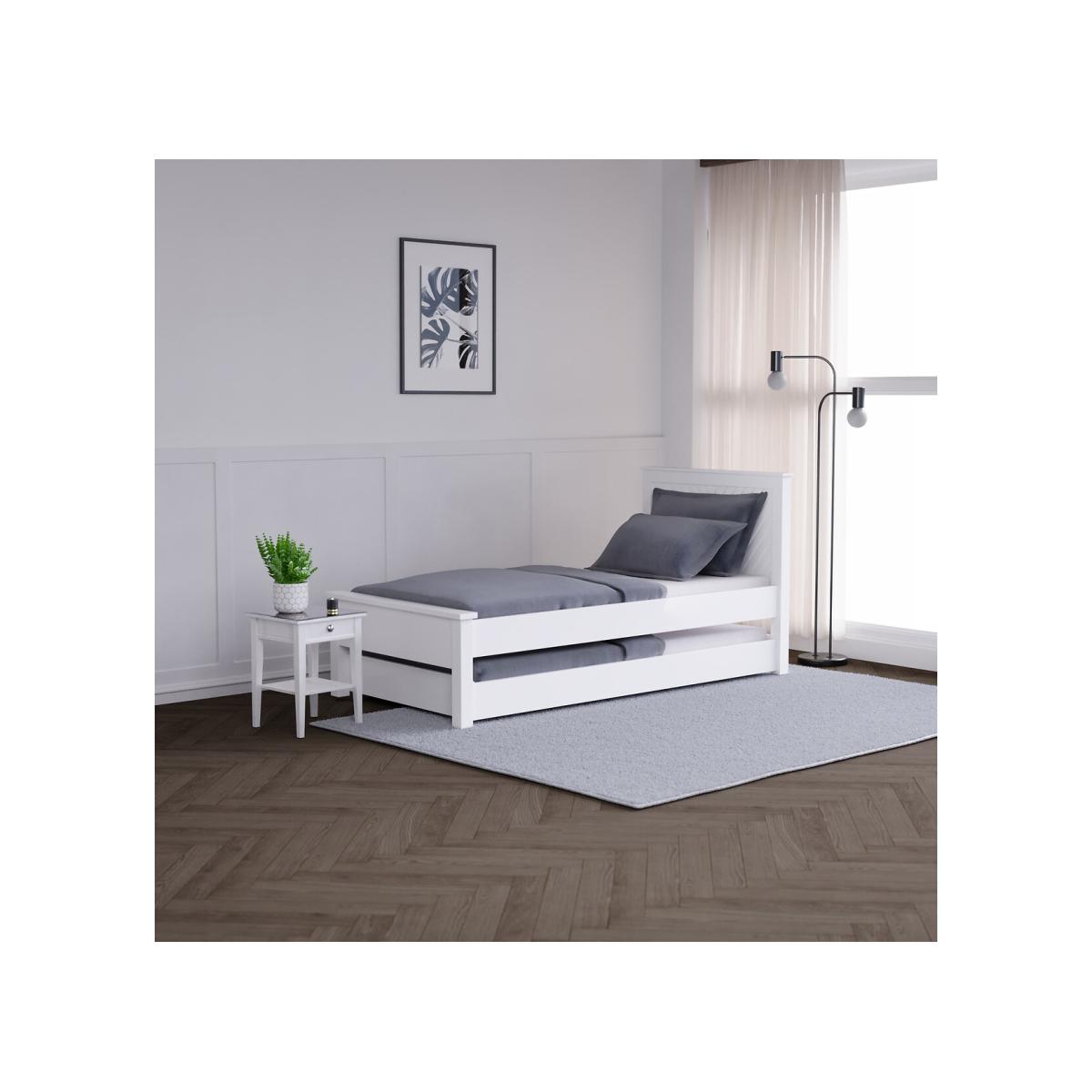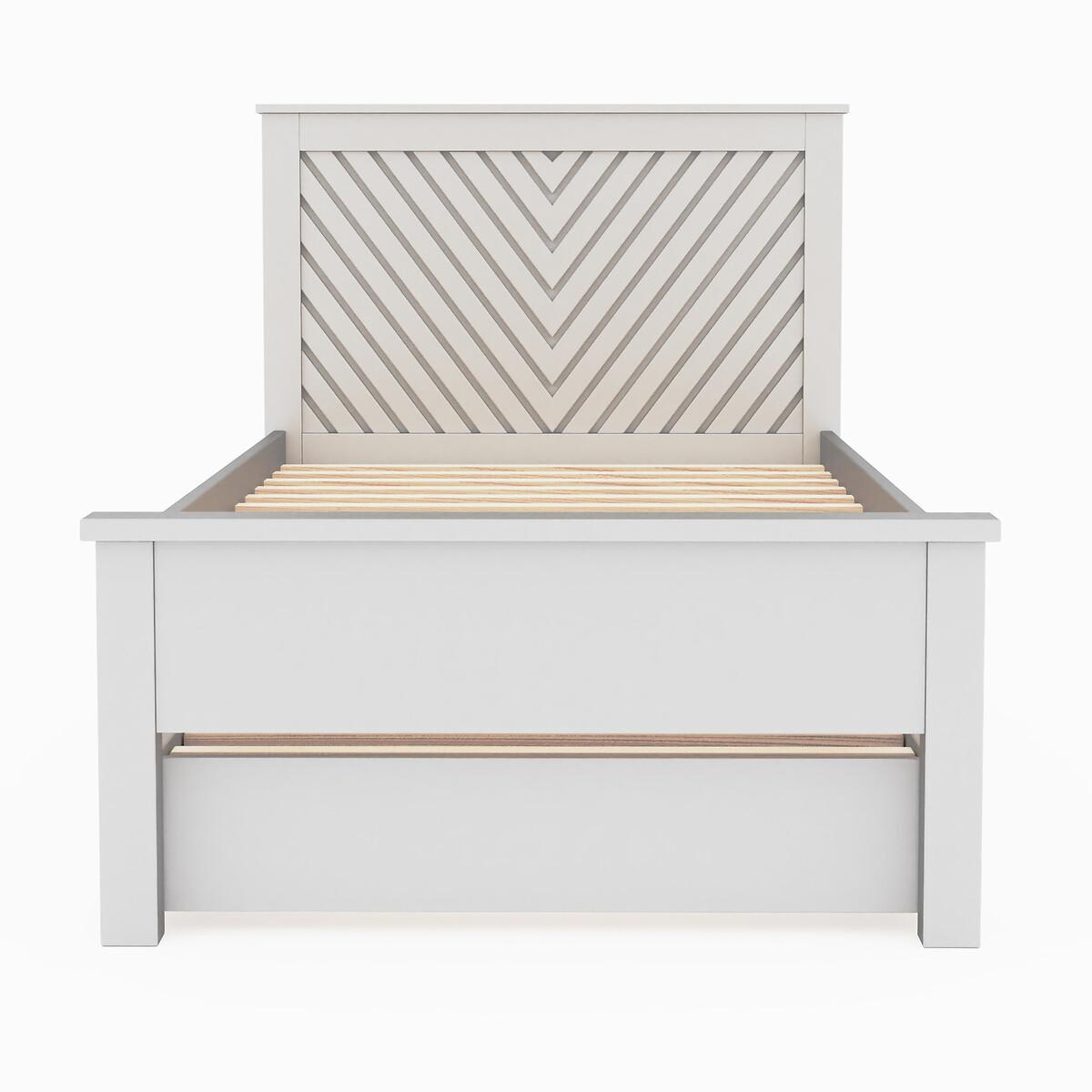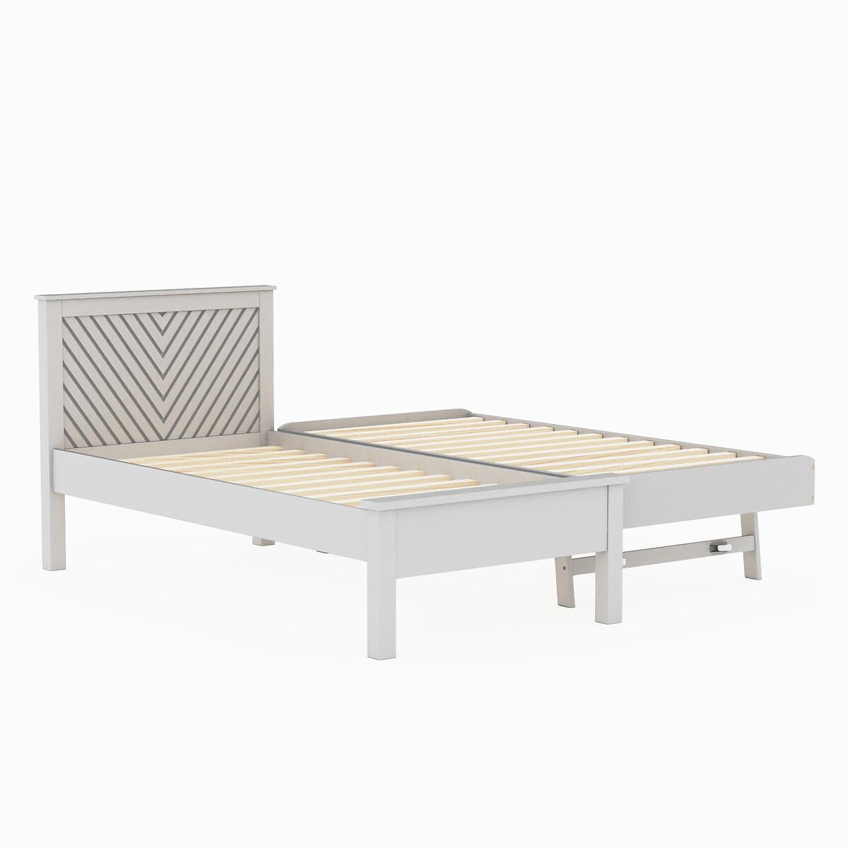 Perfect for sleepovers, this bed features pull-out full size single trundle bed making it easy to acocmodate extra guests. A slatted wood base allows air to circulate under the mattress, keeping it fresh and hygienic, whils a solid hevea rubberwood frame provides strength and durability. The chevron style headboard makes this a stylish addition to any bedroom. Product Details White Painted FinishPull- Out Trundle Bed(Single Size)Chevron Style Headboard Rubberwood Frame Mattress Not Included Supplied With Slatted Base Max Mattress Height For Trundle Pull-Out Bed: 16cm Assembly Required. Product Dimensions. Single: 206 cm x 100 cm x 100 cm , Weight - 56 KGParcel Dimensions. Single: Parcel 1 Packaged Dimensions - 125 cm x 109 cm x 8 cm, Weight 25.5 kg Parcel 2 Packaged Dimensions - 203.5 cm x 32.6 cm x 13 cm, Weight 18 kg Parcel 3 Packaged Dimensions - 198.5 cm x 30 cm x 9.5 cm, Weight 18 kg. This product will be dispatched by one of our trusted suppliers. You’ll be contacted by their selected courier about your delivery. Please note: this product cannot be delivered to all Offshore Islands, Northern Ireland or Republic of Ireland. KYOTO01