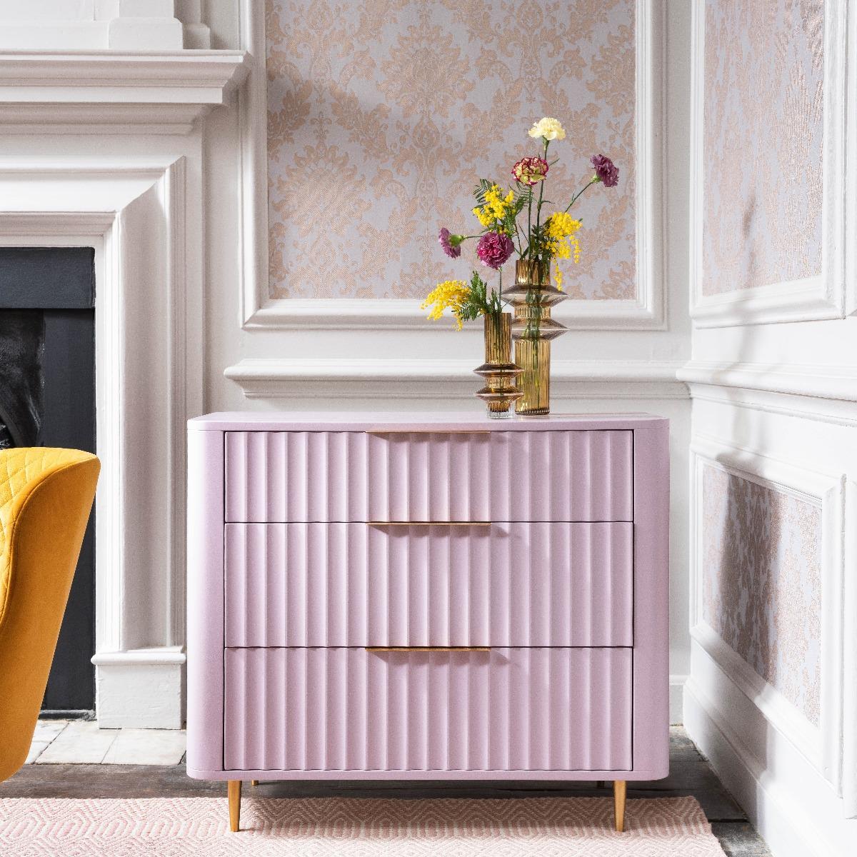 I love this purple dresser for its bold pop of colour and sleek, modern lines. It works particularly well in contemporary or eclectic interiors where a splash of colour can energise a space. The three drawers offer practical storage, making it great for bedrooms, living rooms, or even a stylish home office. For styling tips, pair it with minimalist accessories and metallic accents to highlight its chic vibe, or contrast its colour with neutral tones to make it stand out even more. To keep the look fresh, consider placing a decorative tray or a small plant on top, creating a balanced and functional focal point.