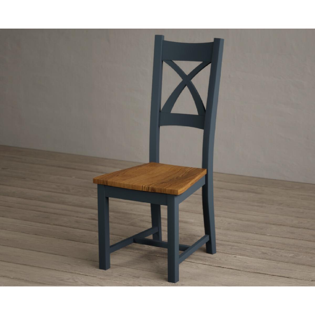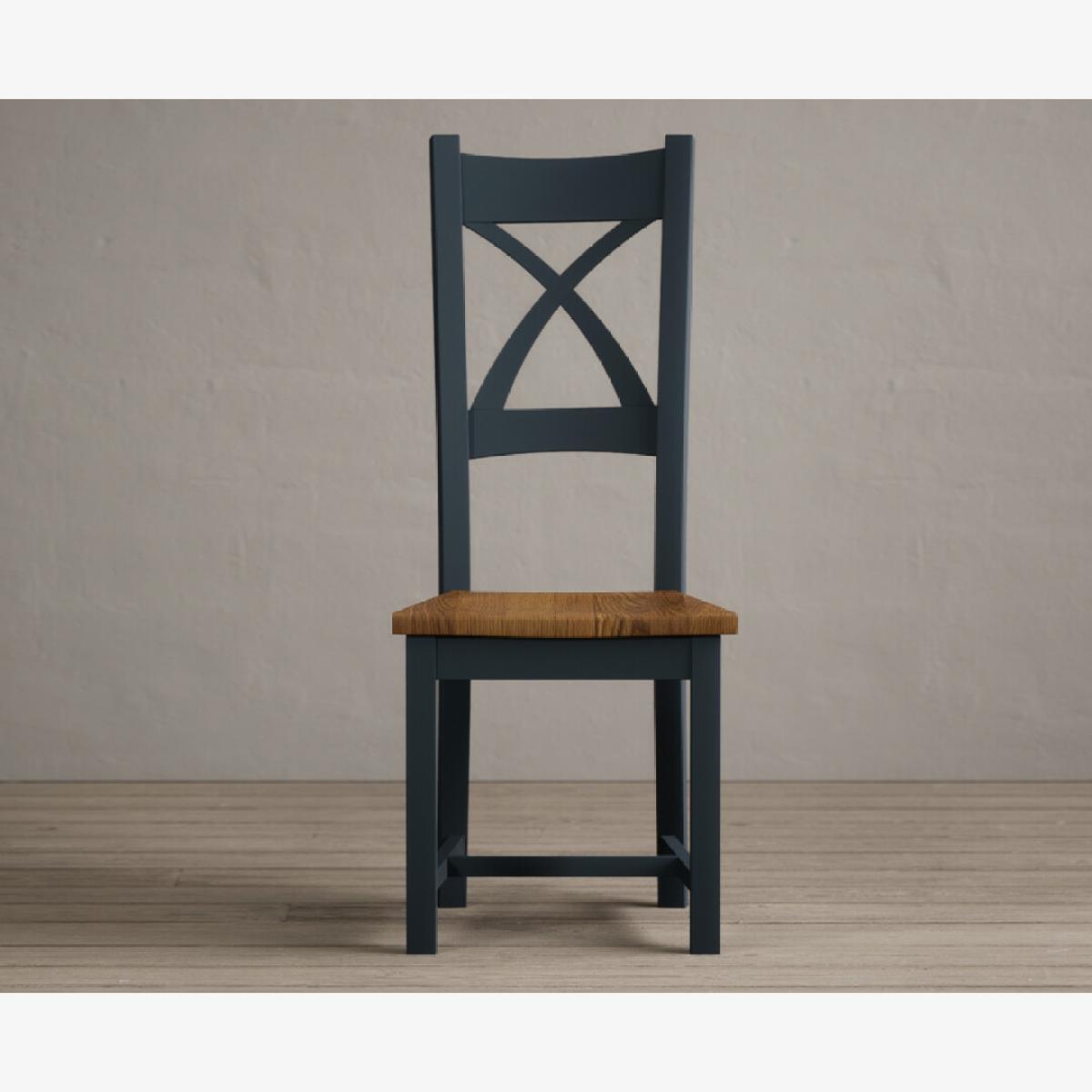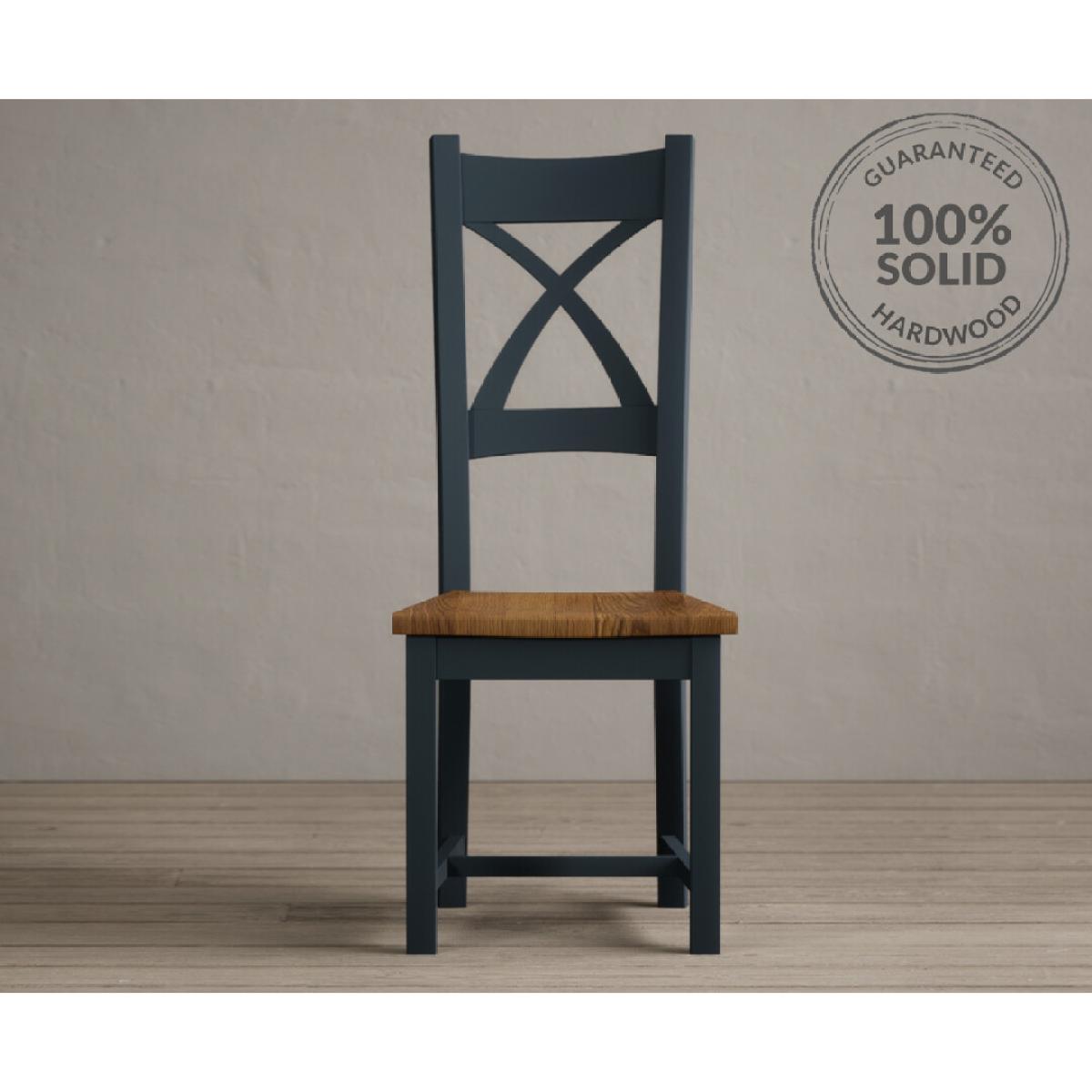 Painted Dark Blue X Back Dining Chairs with Rustic Oak Seat Pad