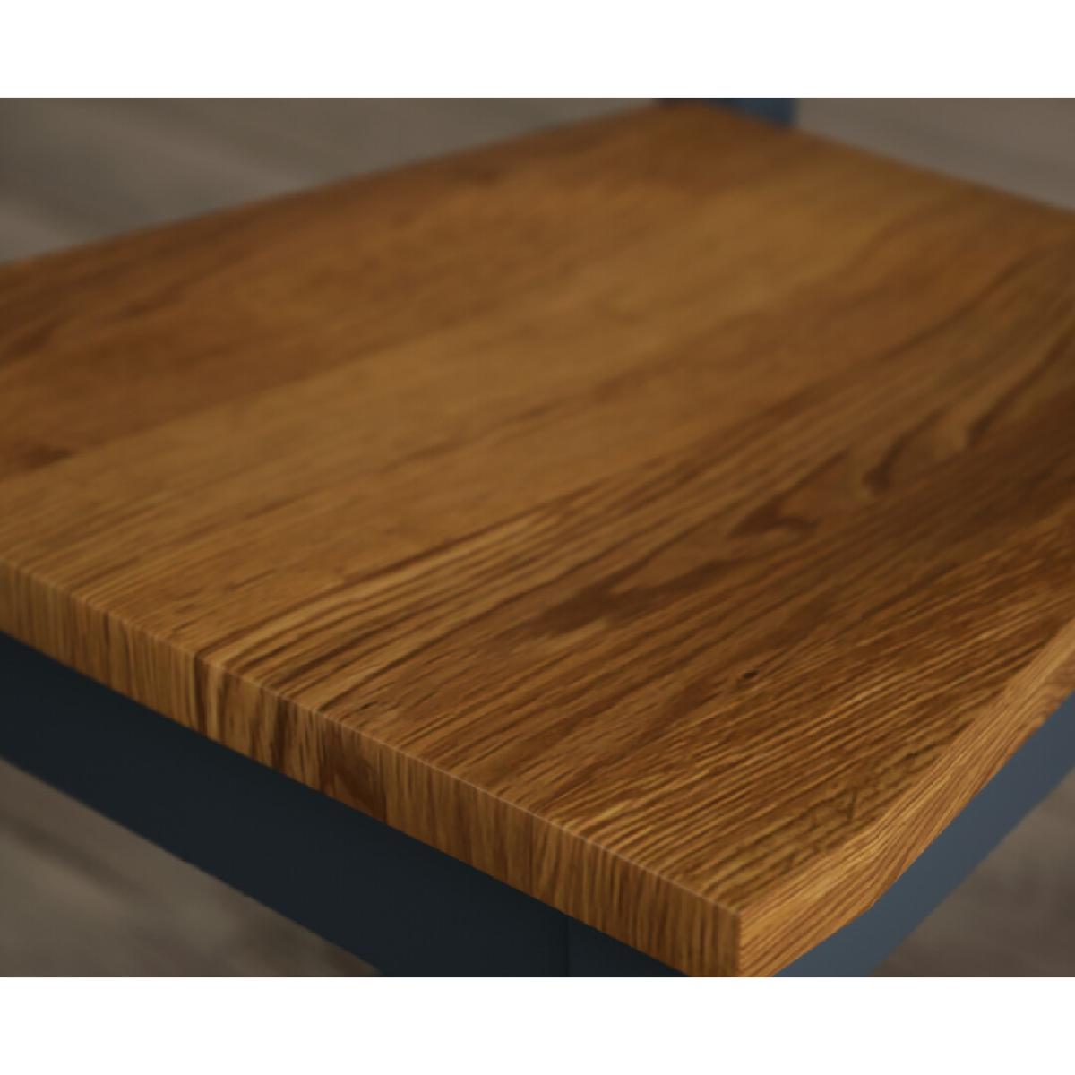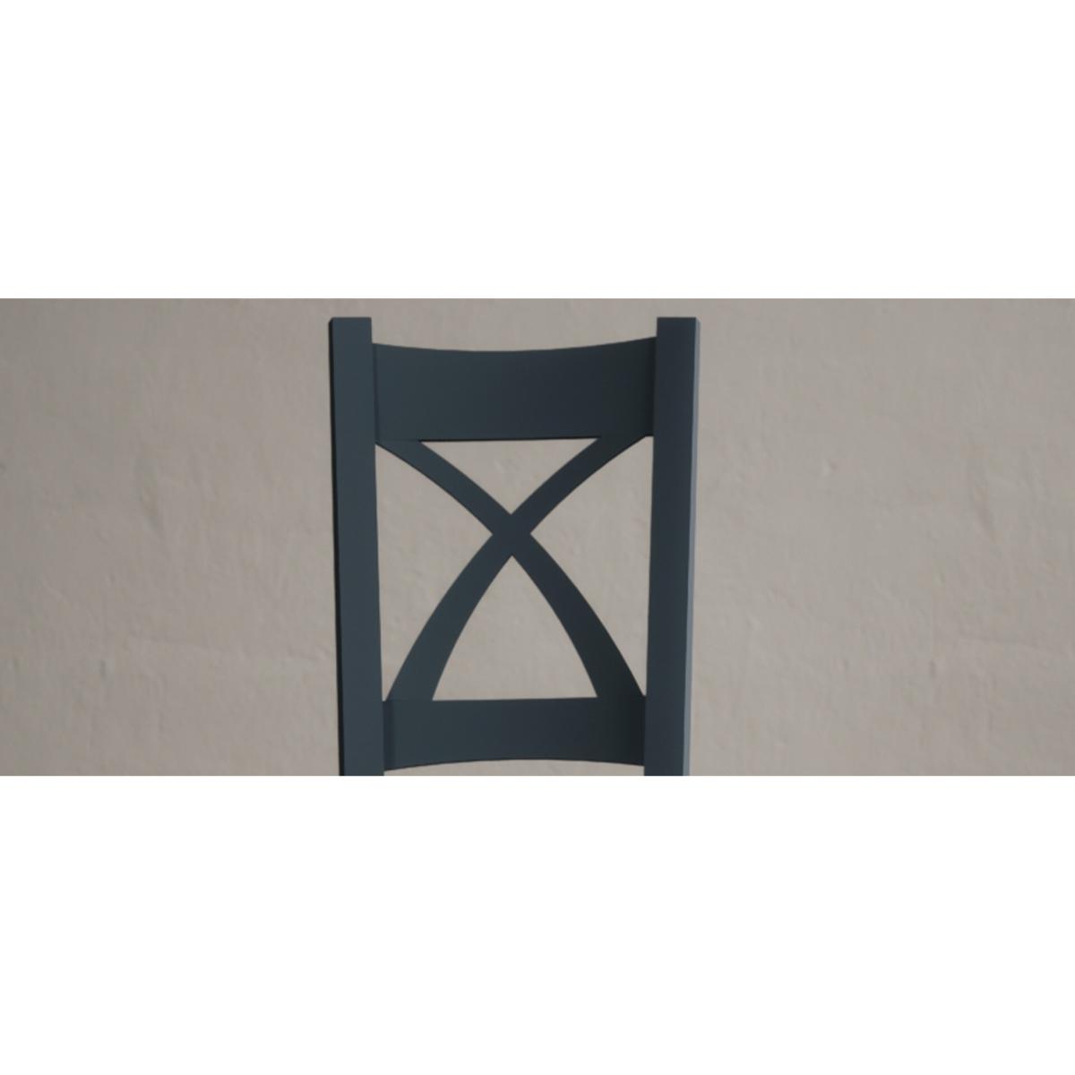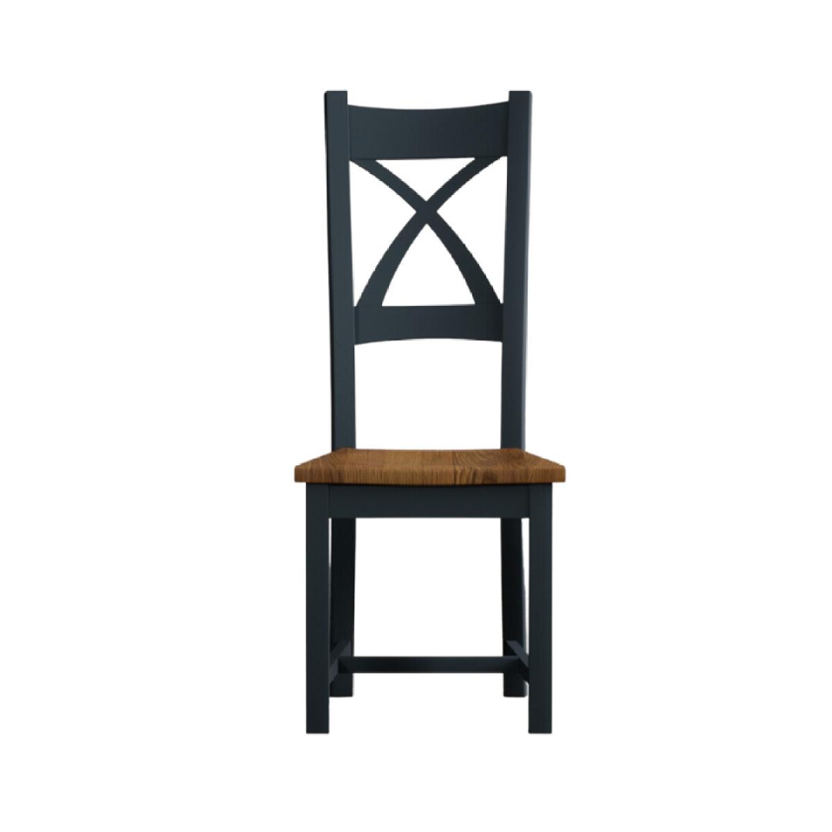Painted Dark Blue X Back Dining Chairs with Rustic Oak Seat Pad