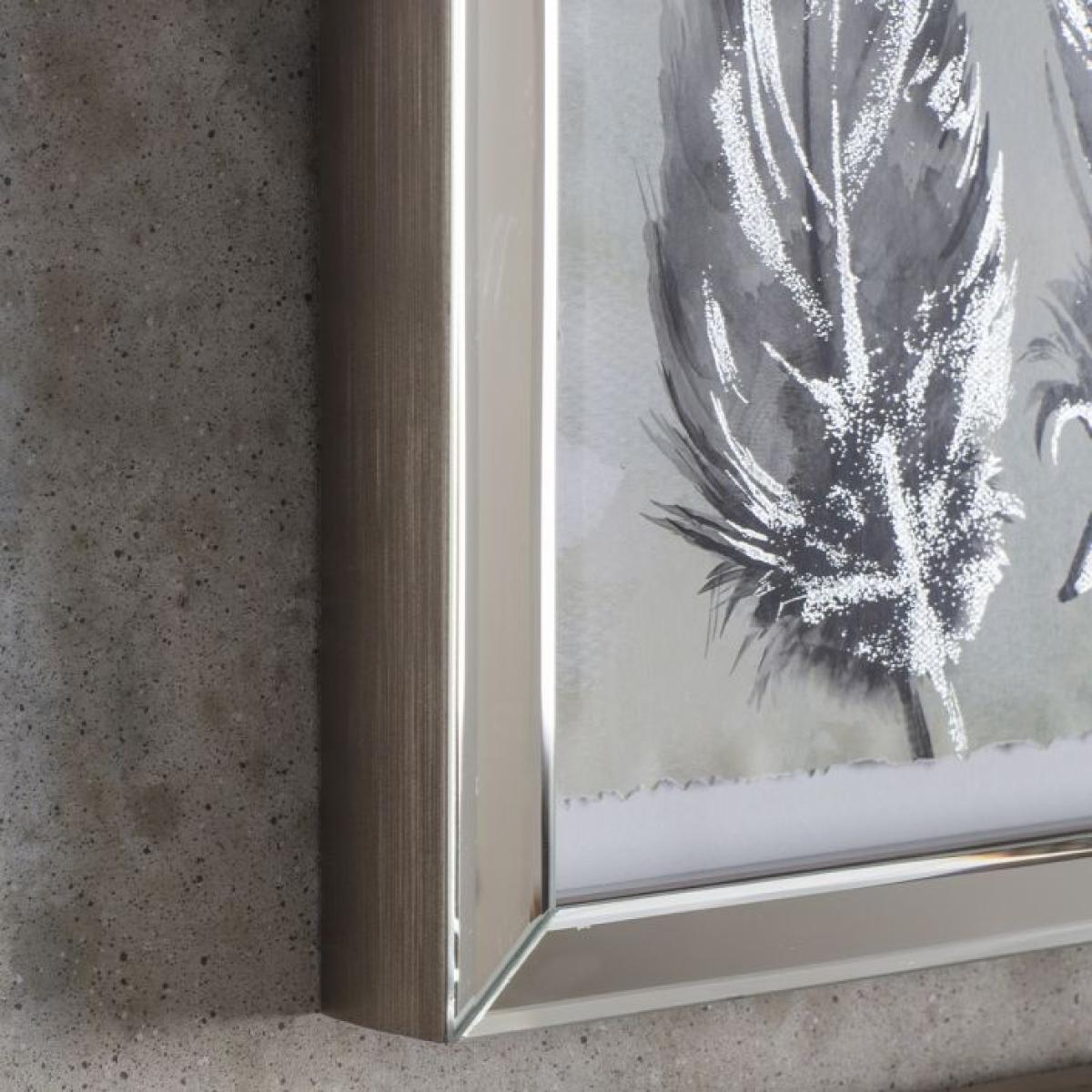Set of 2 distressed watercolour style feather prints with a hand torn edge, float mounted in a stylish bevelled mirror frame.