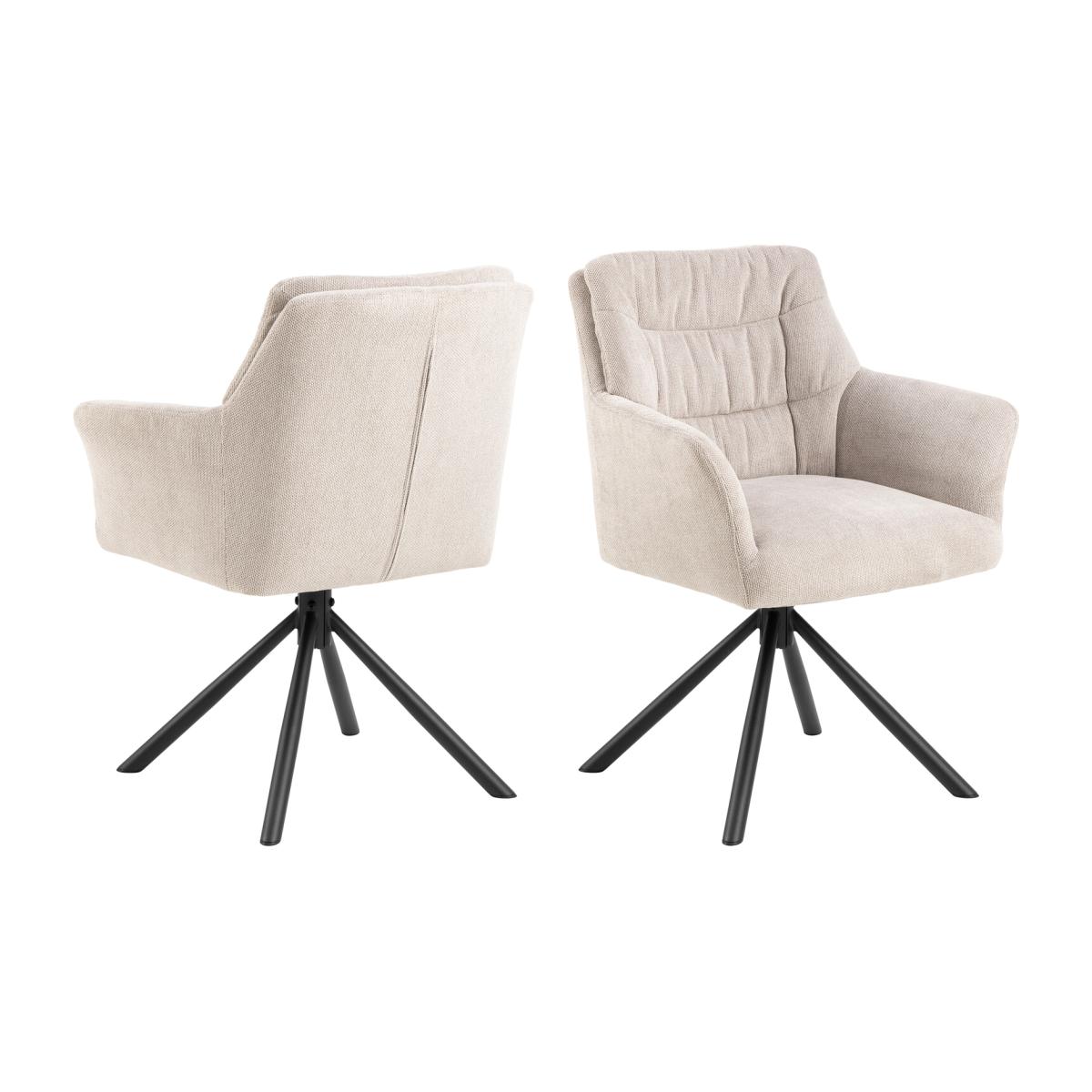 Transform your dining experience with the chic Pair of Alonso Swivel Dining Chairs with Armrests. These expertly designed chairs seamlessly blend comfort and sophistication, featuring pocket springs and a unique swivel function for effortless mobility. Dressed in a luxurious soft-touch beige chenille fabric adorned with elegant horizontal stitching, they add a touch of texture to your space while maintaining a contemporary flair. The sturdy 4-star base, crafted from matte black rough powder-coated steel, not only ensures durability but also enhances the modern aesthetic. Perfect for elevating your dining area, this stylish duo is an exceptional choice for anyone looking to enrich their home decor.
