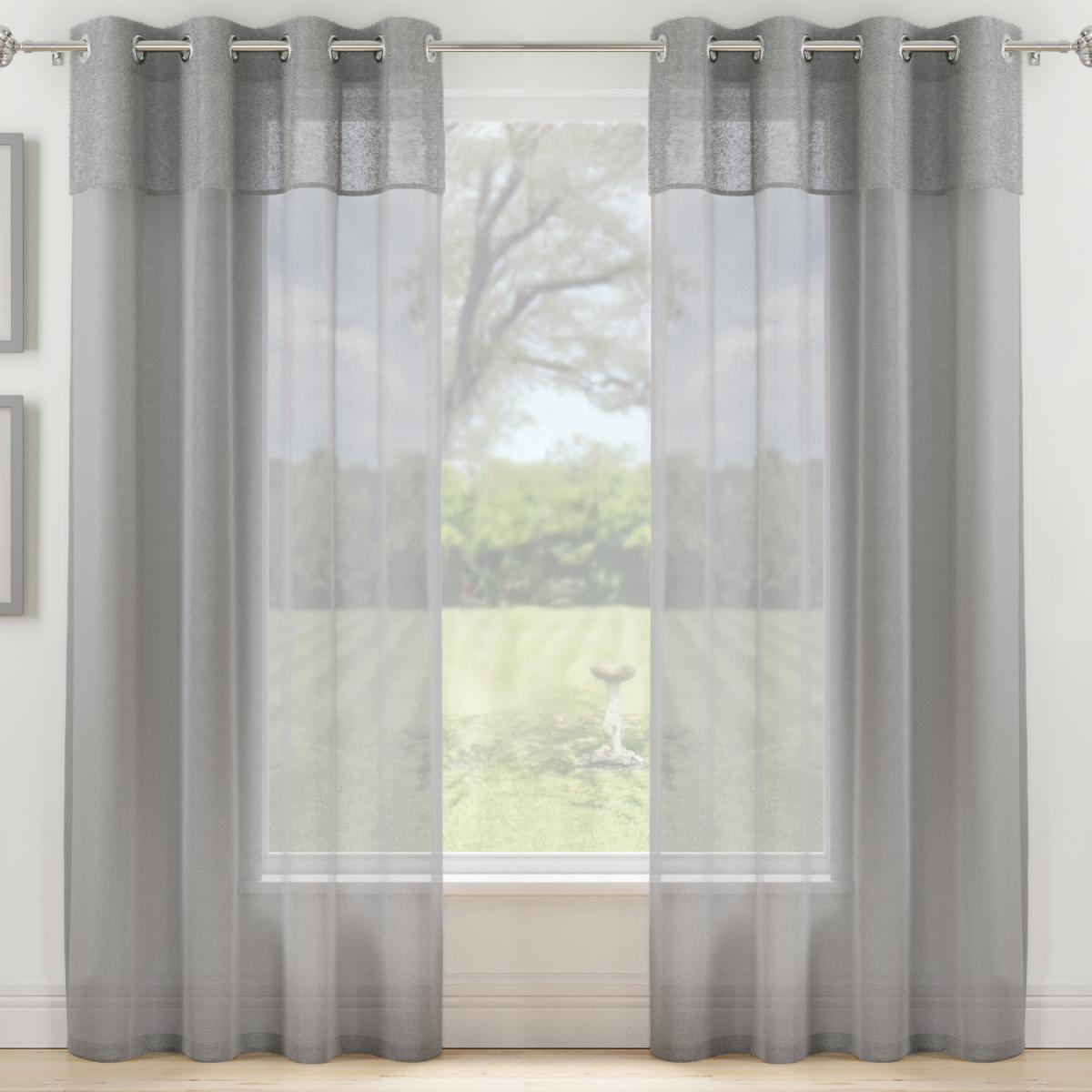 Elevate the ambiance of your space with our Andorra Sheer Textured Header Single Panel. Crafted from a delicate, lightweight fabric, this curtain allows soft natural light to filter through, creating a bright and airy atmosphere while still offering privacy. The texture in the header fabric adds depth and dimension, giving your room a sophisticated, refined look. Featuring an eyelet header, this curtain is designed for effortless installation and smooth movement, allowing it to glide easily along your curtain rod or pole. Its simple yet elegant design makes it perfect for any room, whether you're looking to enhance the living room, bedroom, or dining area. Ideal for those who want to maintain a sense of openness without sacrificing style, this sheer textured curtain brings a modern, fresh feel to your home dcor with ease.
