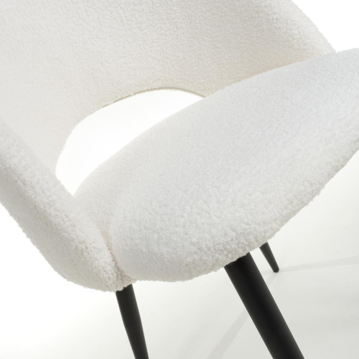 I love these chairs for their clean, modern look and versatile style. The white boucle fabric adds texture and softness, making them suitable for both contemporary and Scandinavian-inspired interiors. They work particularly well in bright, airy dining rooms or kitchens with neutral palettes, where they can act as a statement piece. Practical styling tips include pairing them with a wood or marble table to add warmth, or mixing with colourful accessories for a playful contrast. Their understated elegance makes them adaptable, but I’d recommend keeping the surrounding décor minimal to really let their design shine.