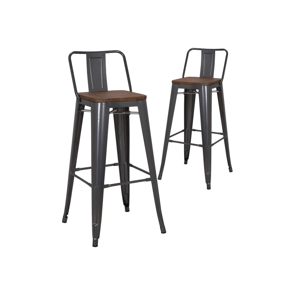 Introducing our sleek and stylish metal bar stools, perfect for both residential and commercial use. Constructed with high-quality metal, these bar stools are sturdy and durable, built to withstand heavy usage in any setting. The design of these stools is both modern and minimalist, featuring clean lines and a simple yet elegant shape. The metal frames are finished in a polished chrome, adding a touch of sophistication to any space. The wooden seat and backrest are ergonomically designed, ensuring maximum comfort for extended periods of sitting. These bar stools are versatile and can be used in a variety of settings, from home kitchens and dining rooms to restaurants, bars, and cafes. Their compact size makes them ideal for smaller spaces, while their durable construction makes them suitable for high-traffic areas. With their contemporary design and durable construction, these metal bar stools are sure to be a stylish and practical addition to any space. Order now and experience the perfect blend of form and function!