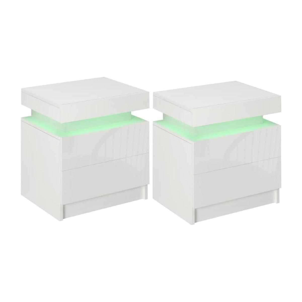 Light up the night in cool style: look to this Chilli Seating bedside table. It comes with a middle LED panel: 16 different colours and four different modes mean you can create different moods and feelings at the touch of the remote. It comes with two drawers so there's room for keeping night time essentials close to you. Made from sturdy particle board, finished in high gloss for a stylish and modern look.