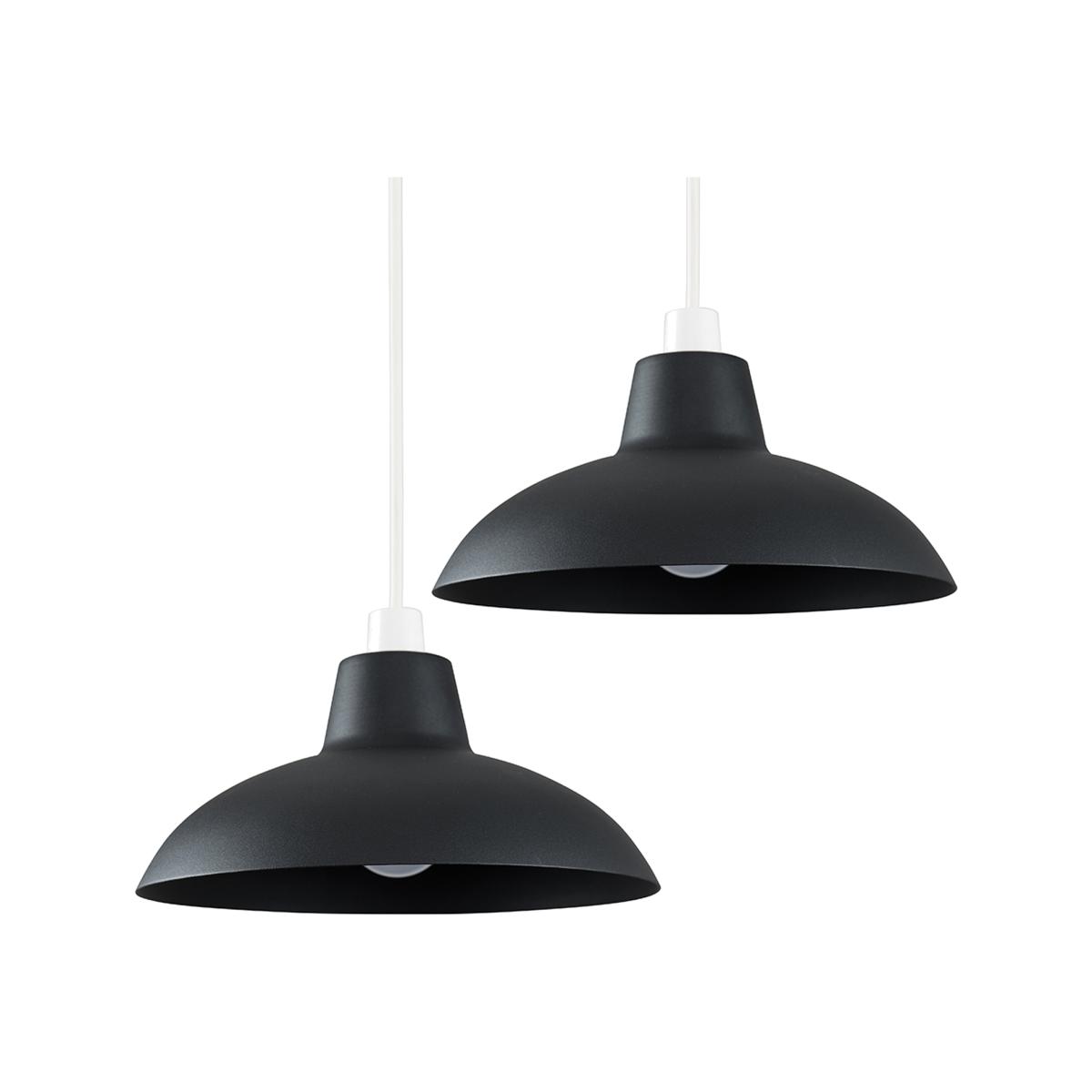 Pair Of Black Metal Easy Fit Living Room Bedroom Ceiling Pendant Light Shades - Black