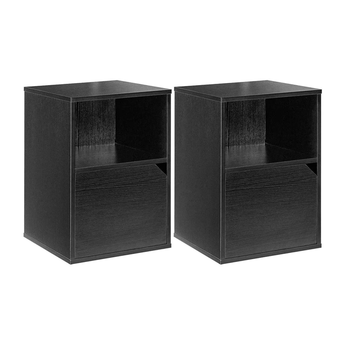 Pair of Black Storage Bedside Tables - Black
