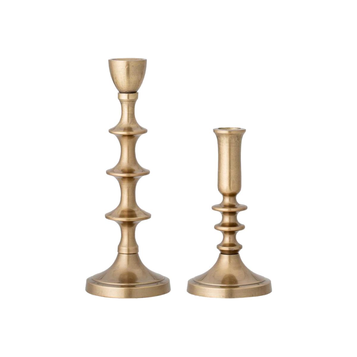 Aluminium. Pair Of Brass Effect Candlesticks, Gold Metal | Barker & Stonehouse